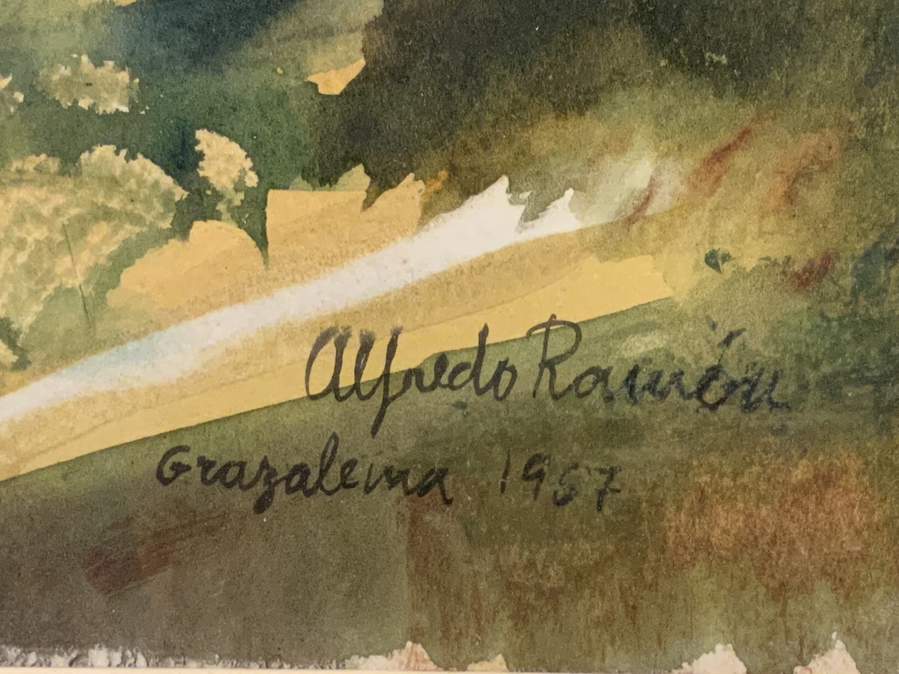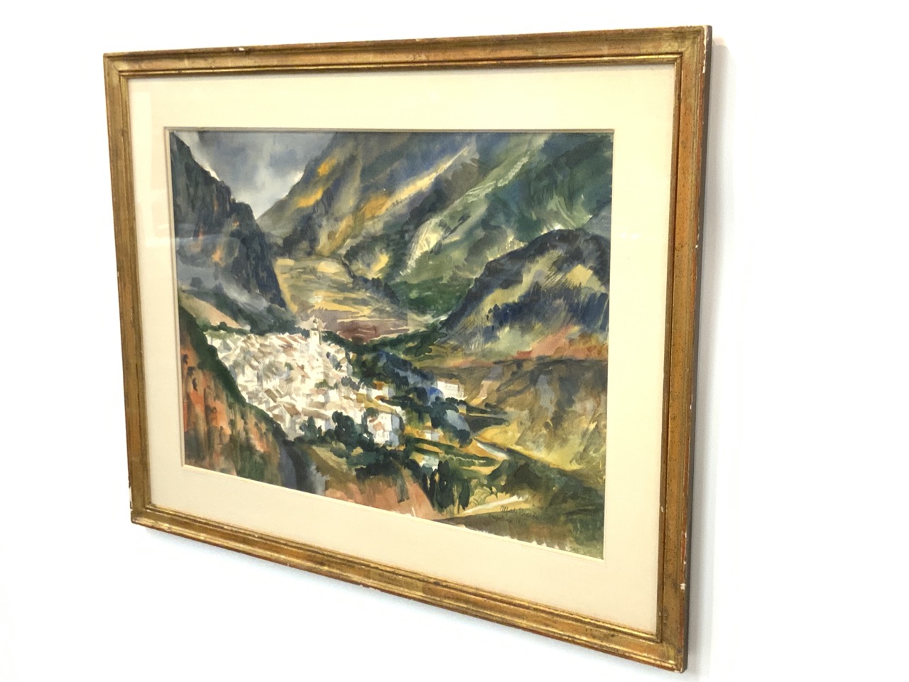 Alfredo Romerio (Italian, 20th c.) Titled: Grazalena, Italy c. 1957 Watercolor on paper. Dimensions: 19”. X 27” and 28” x 36”