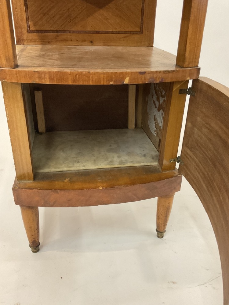 Bottom cabinet having marble lined walls. One panel needed to be re-attached. Finish and veneer ware noted. Restoration pieces. Please see photograph preview or call.