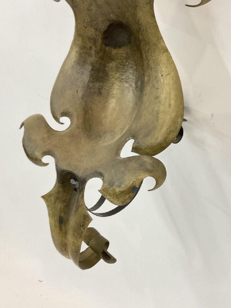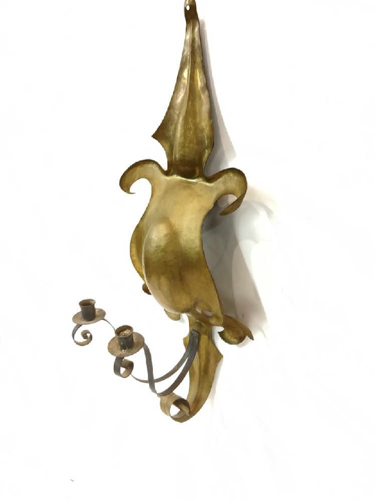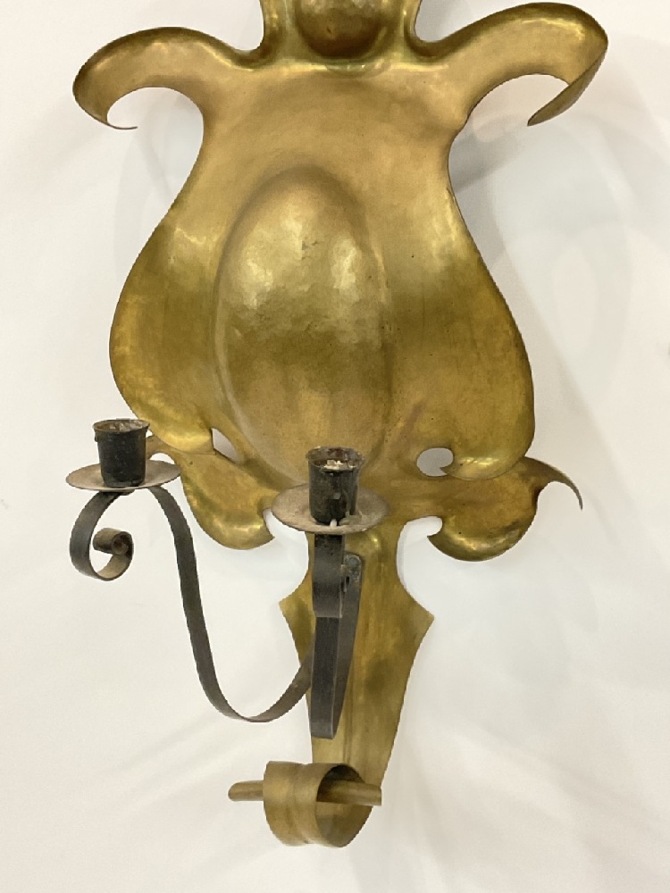 A Brass and Iron Armorial style Wall Sconce.