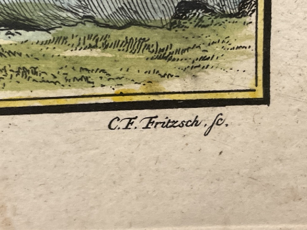 Four (4) C.F. Fritsch hand colored French engravings. Housed in matching frames.