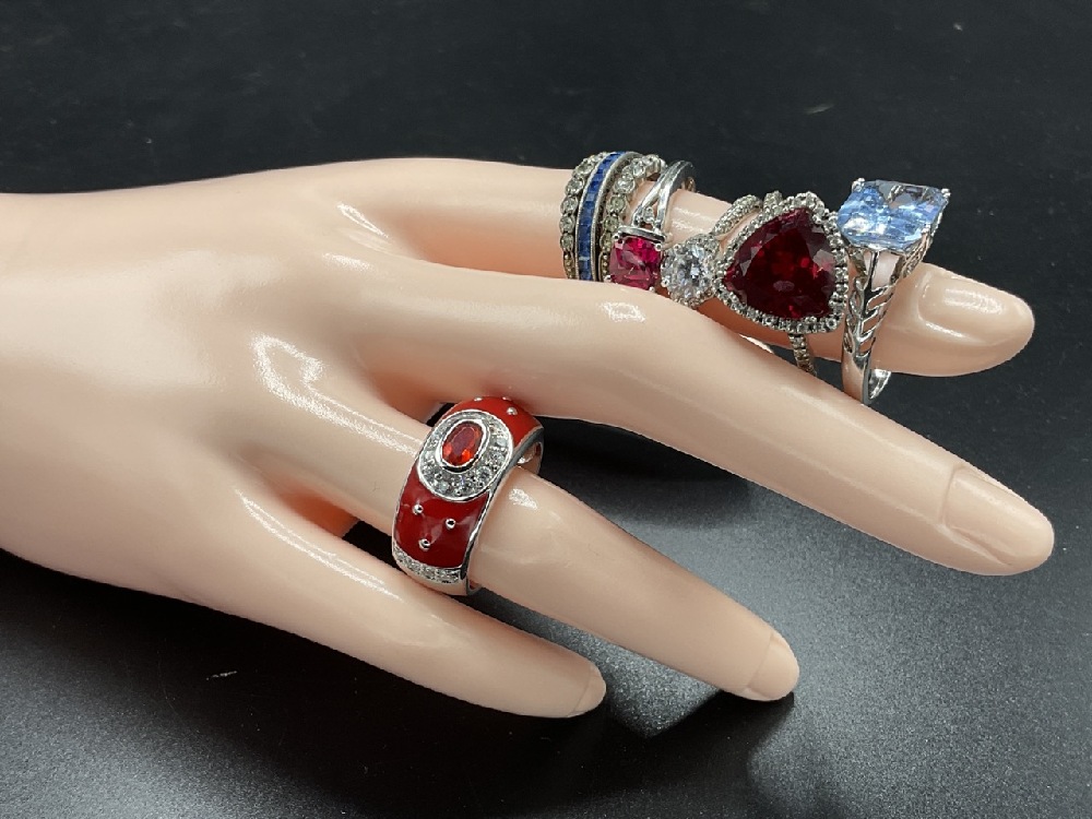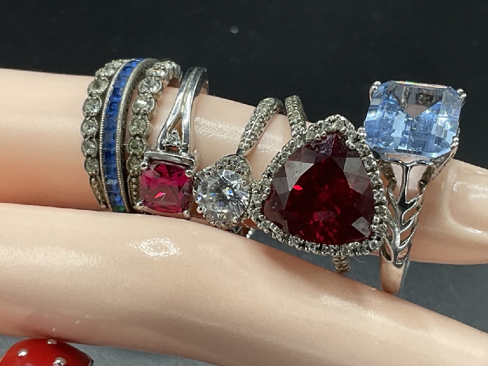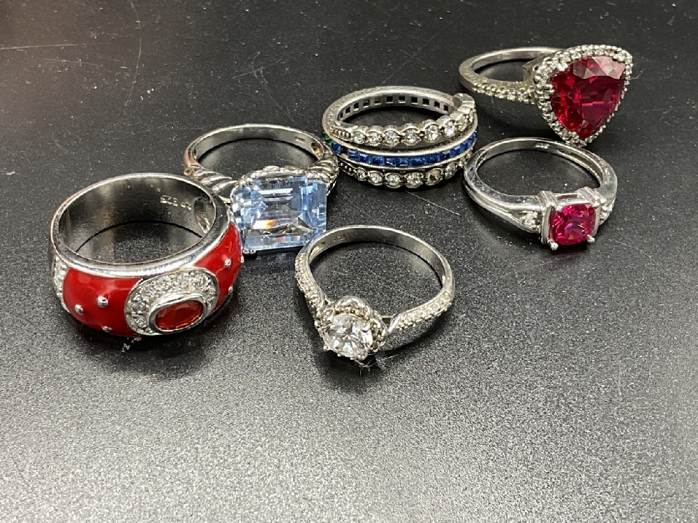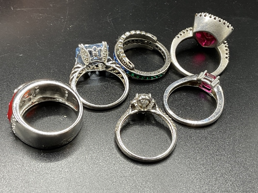 Six (6) Vintage Sterling Silver Rings w/ Gemstones.