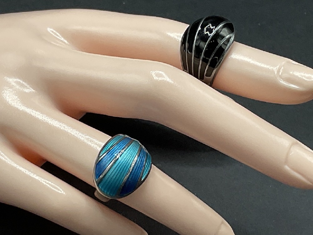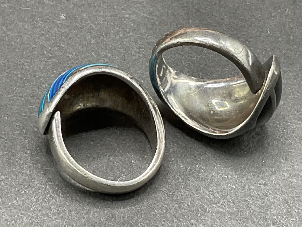 Two (2) David Andersen sterling silver enameled rings. Signed.
