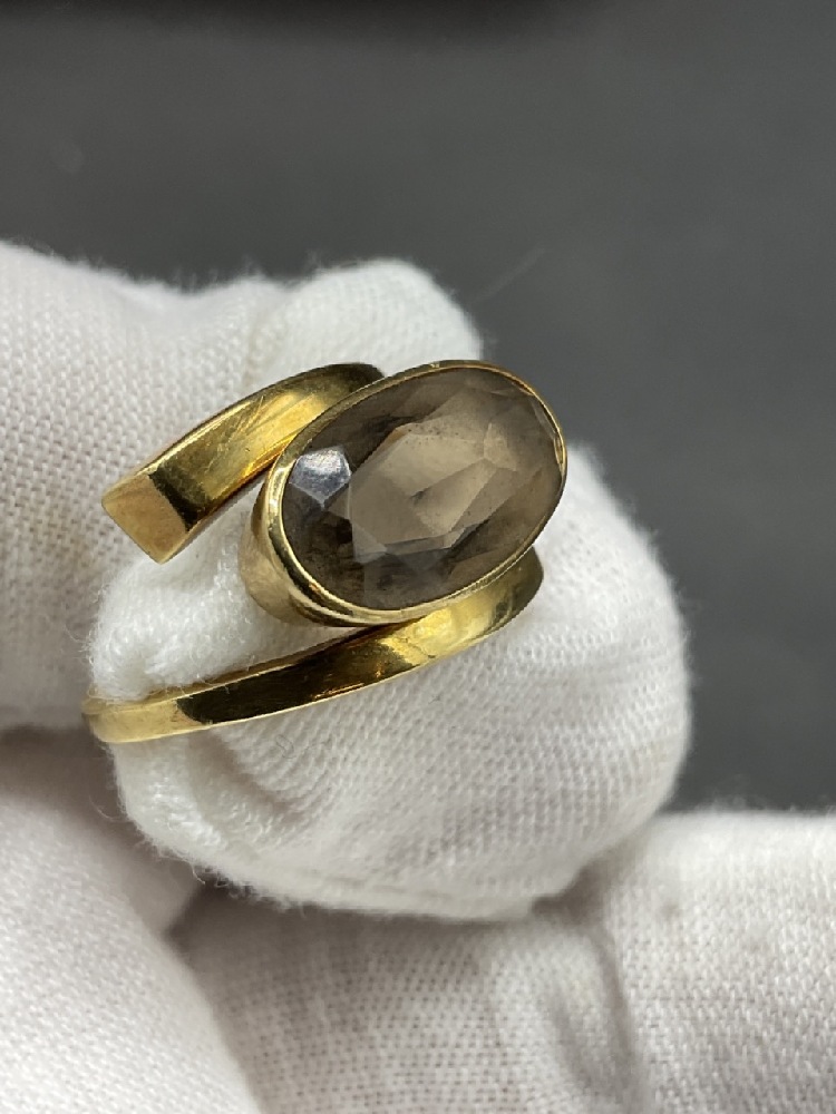 Smoky topaz 18 karat gold ring