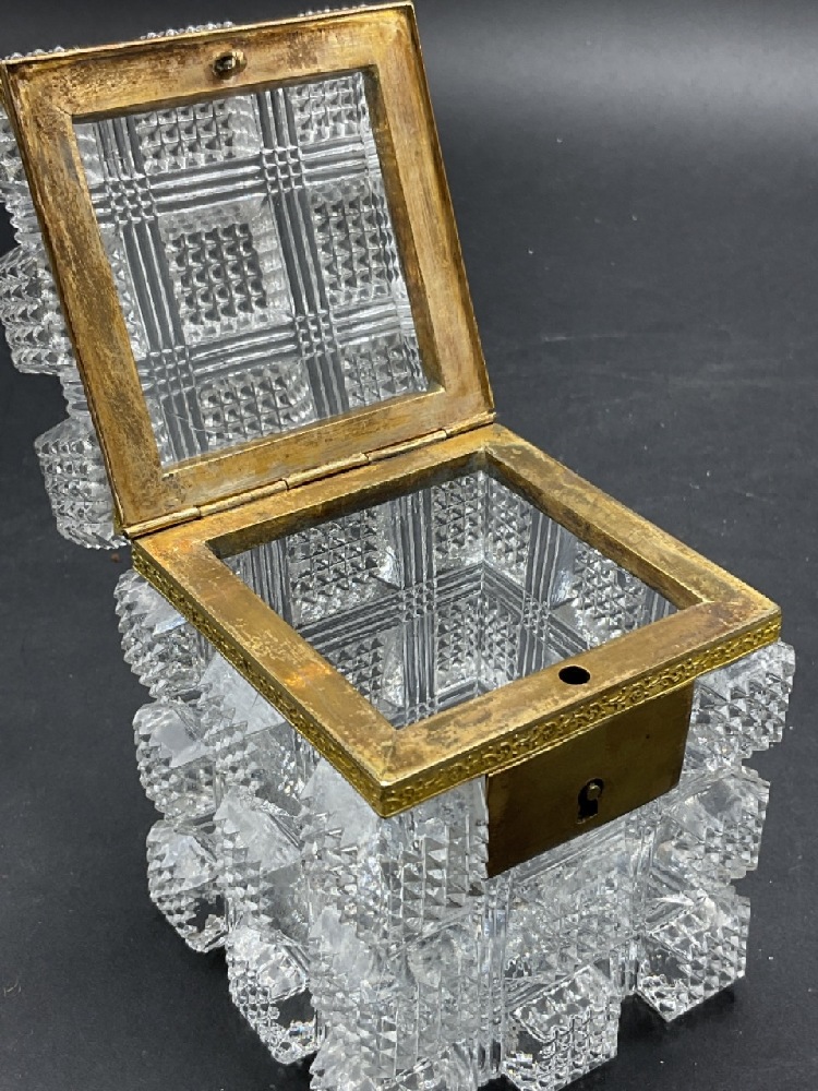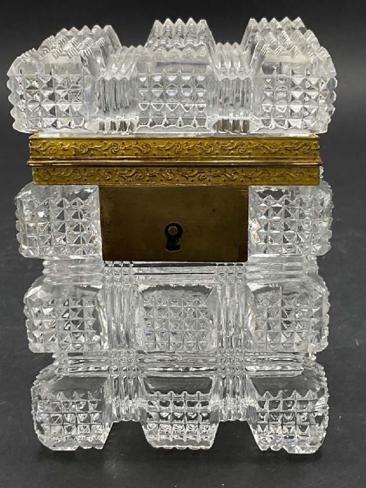 An exceptional English cut glass crystal locking casket box.