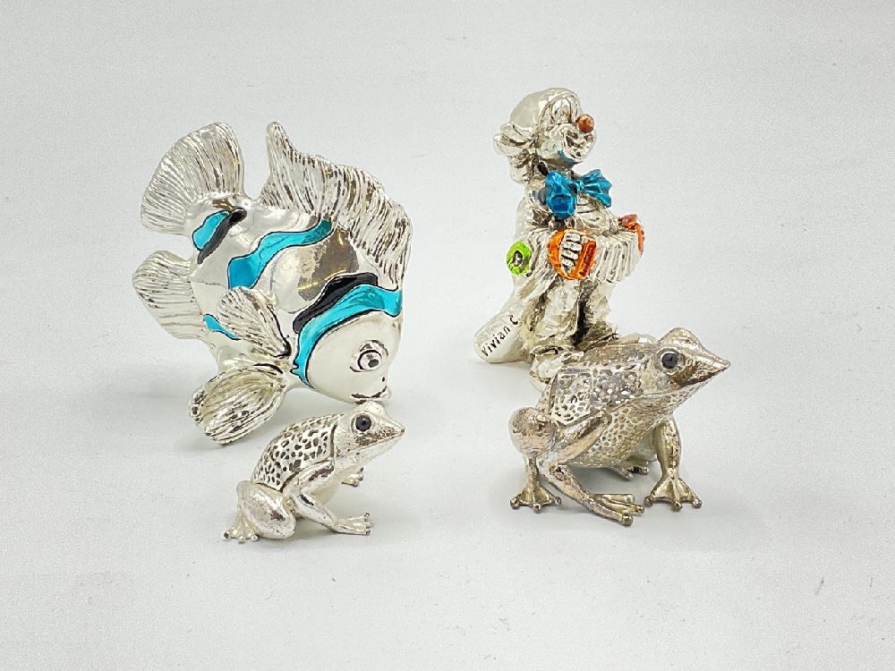 Bougelli and Cristofle silver plated figurine group. Clown, Frog and Fish.