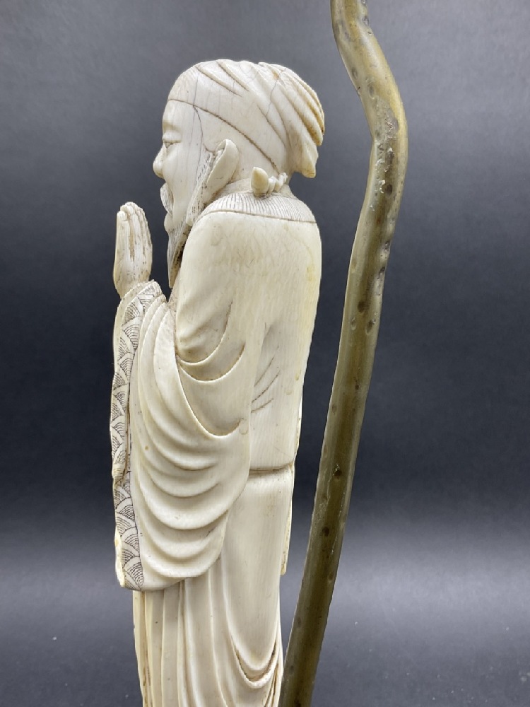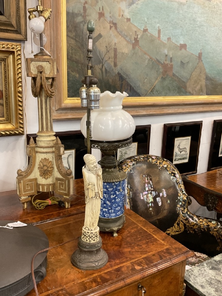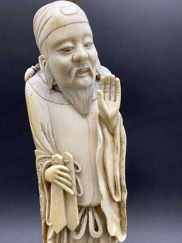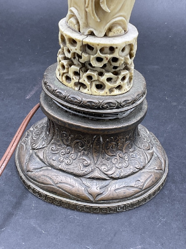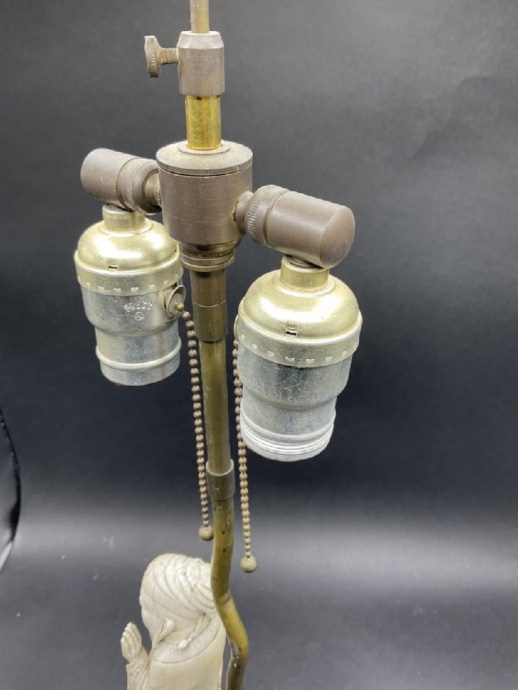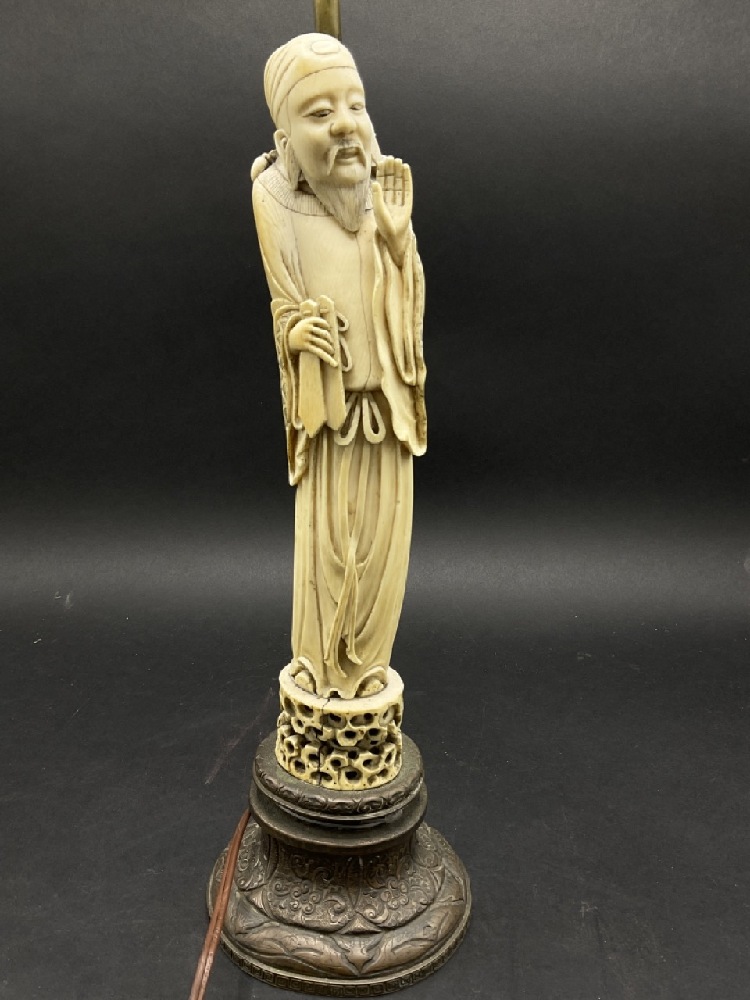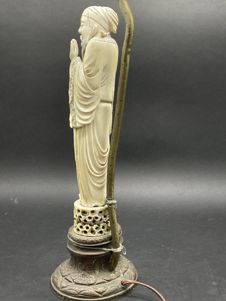 Antique Chinese carved figural statue mounted as a table lamp base.