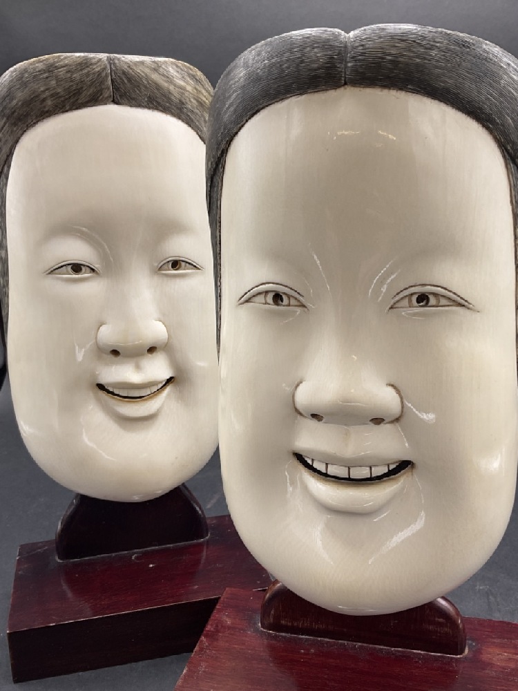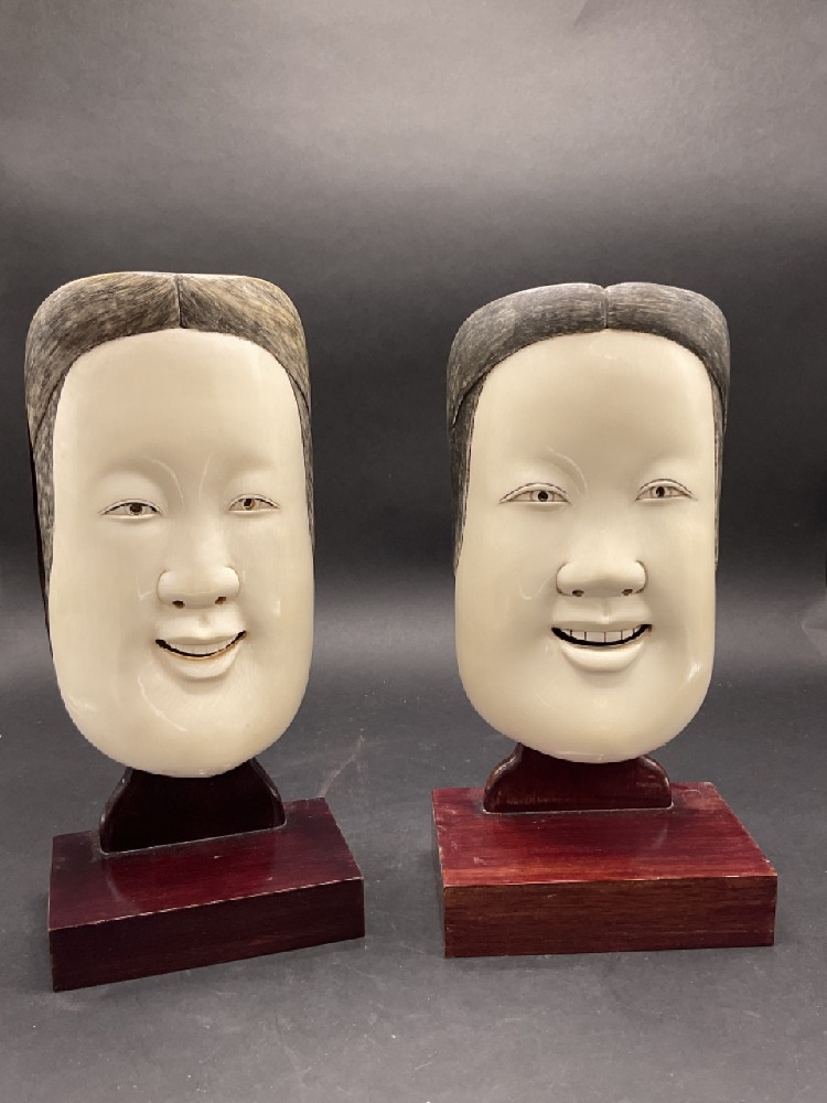 A pair, Carved Chinese Face Masks.