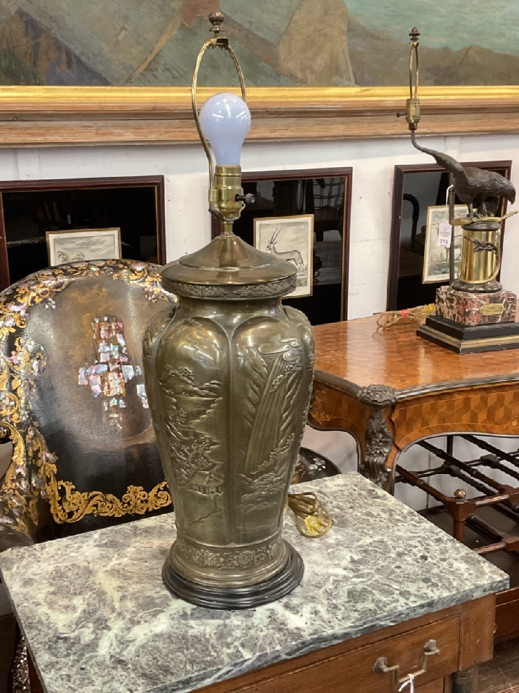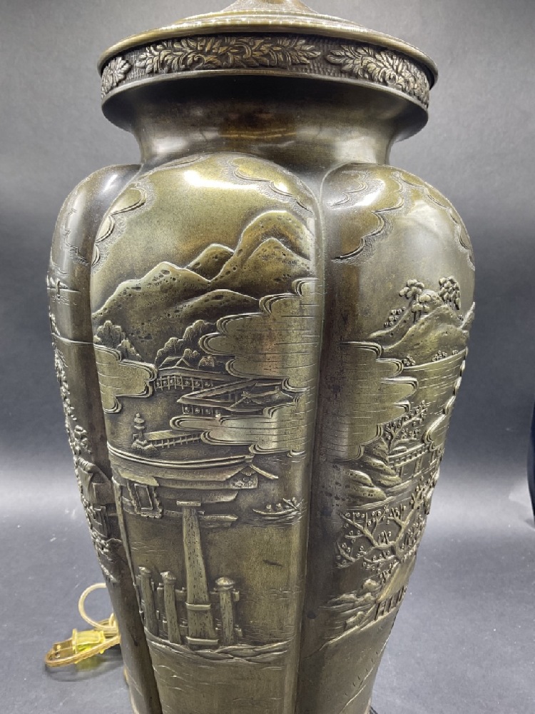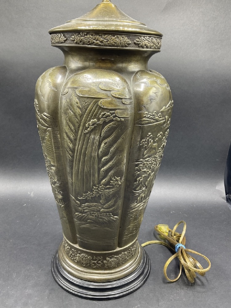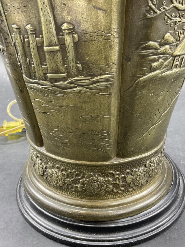 Decorative Japanese bronze table lamp.