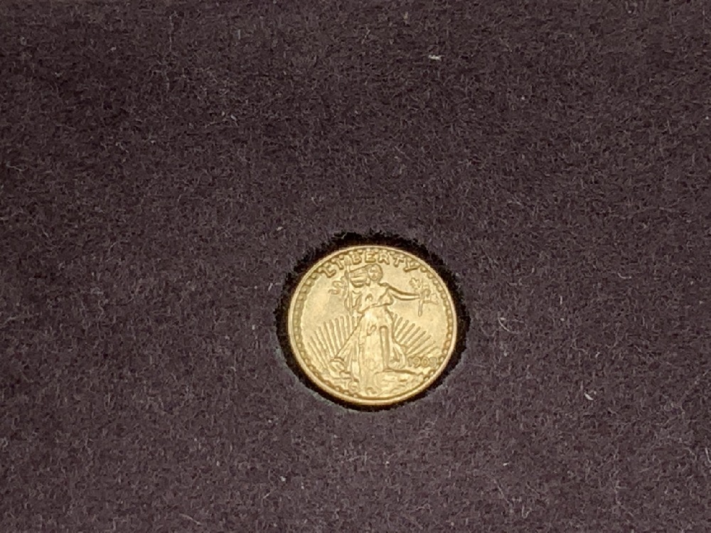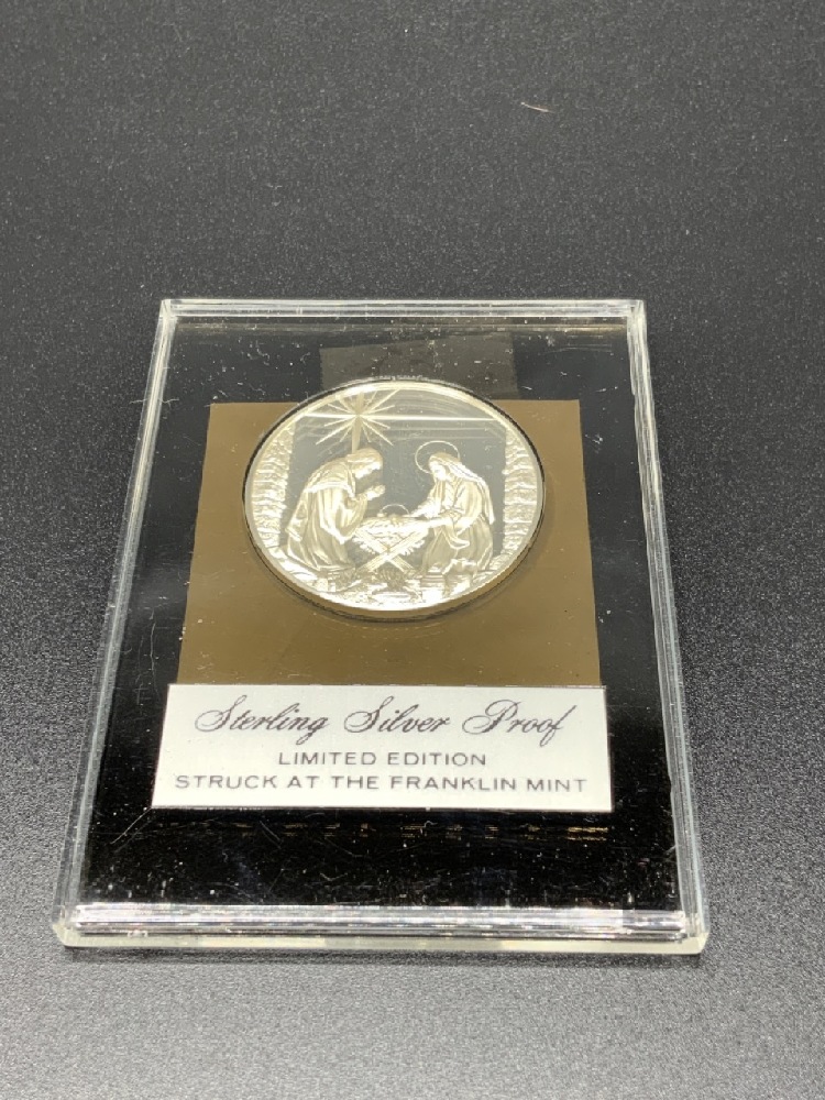One Franklin Mint Collectors Member Sterling Medal, One Franklin Mint Sterling Proof “Holy Birth” Medal, One St. Gaudens 14k Mini Coin 0.5 Grams.