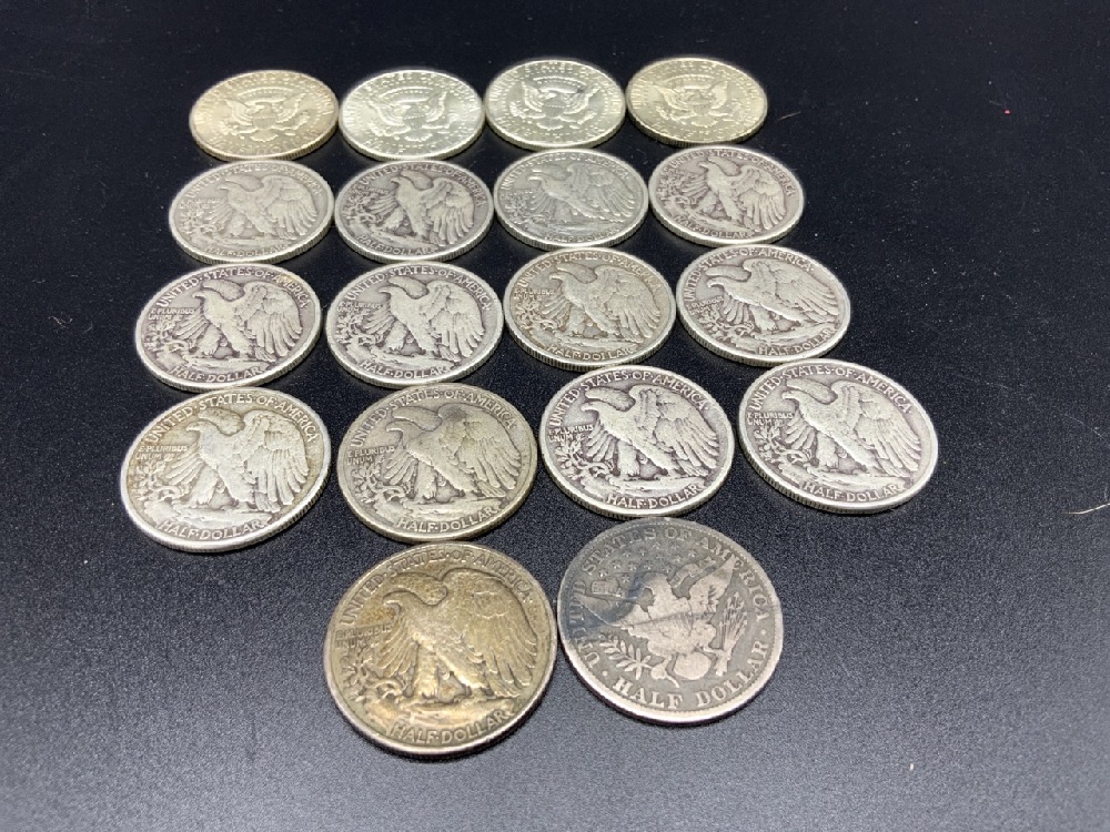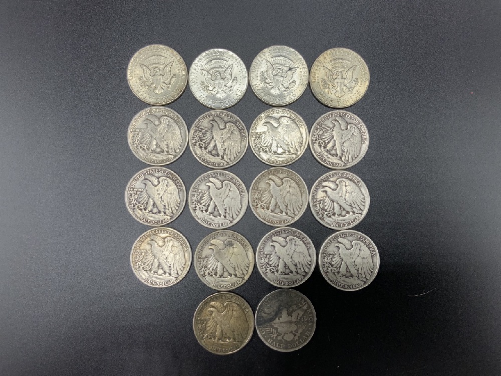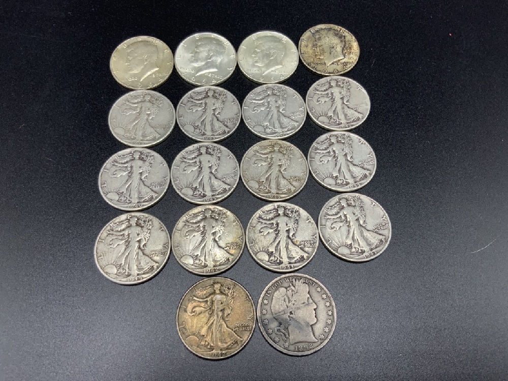 1 1892 P Barber ,4 Kennedy, 13 Walking Liberty.