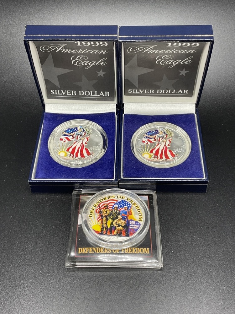 Lot Of 3 Colorized American Silver Eagles