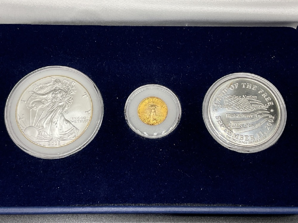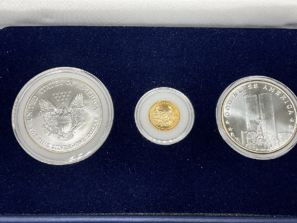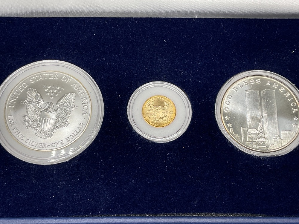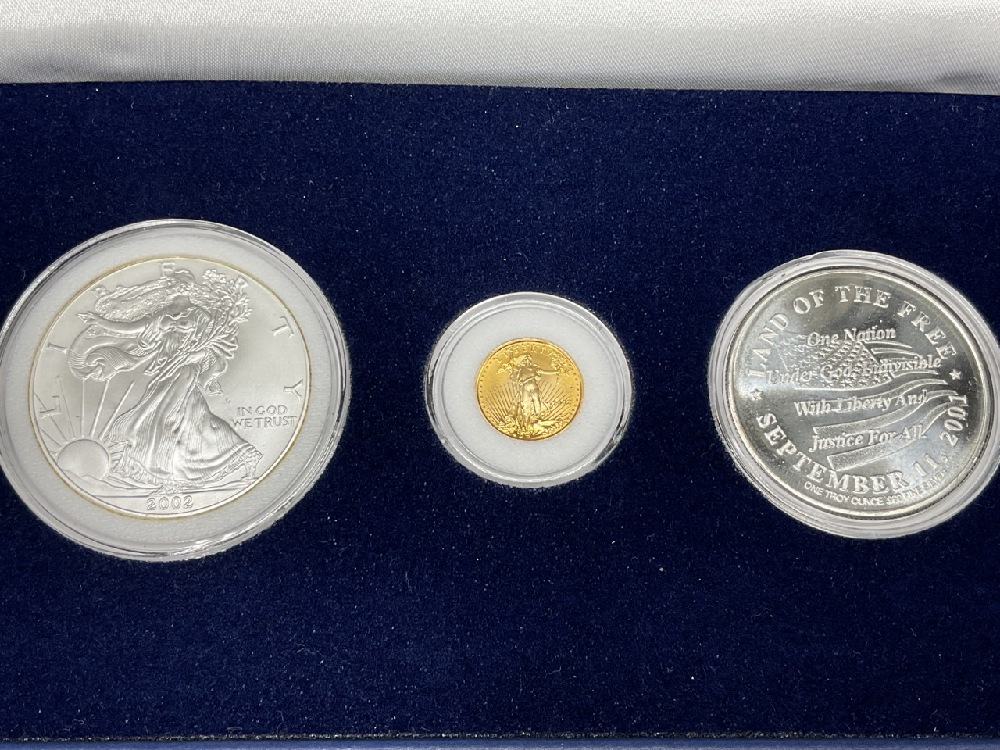 Each set contains 2 Ounces of Pure Silver and a Tenth Ounce Gold Eagle Original Mint Packaging and COA’s