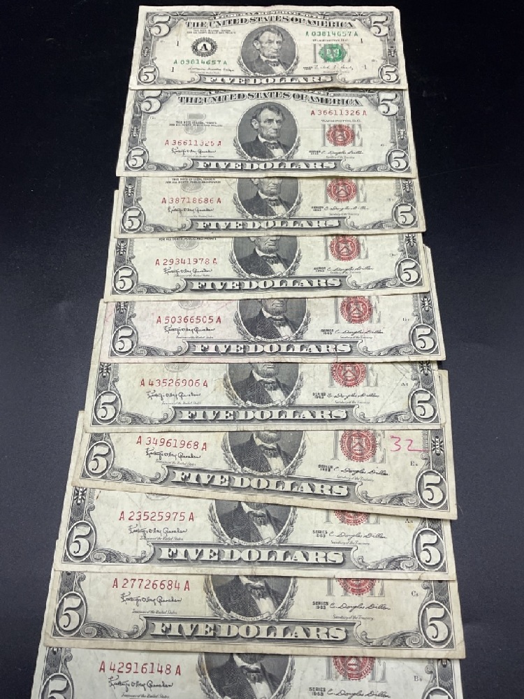 $147 U.S. Face Value Plus Confederate, Foreign, Red Seal, Blue Seal, Star Note, Uncirculated, Hawaii, Silver Certificate, Consecutives All Included.
