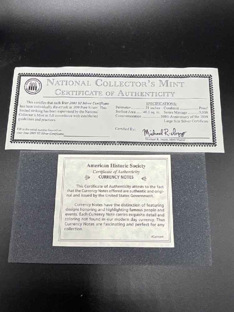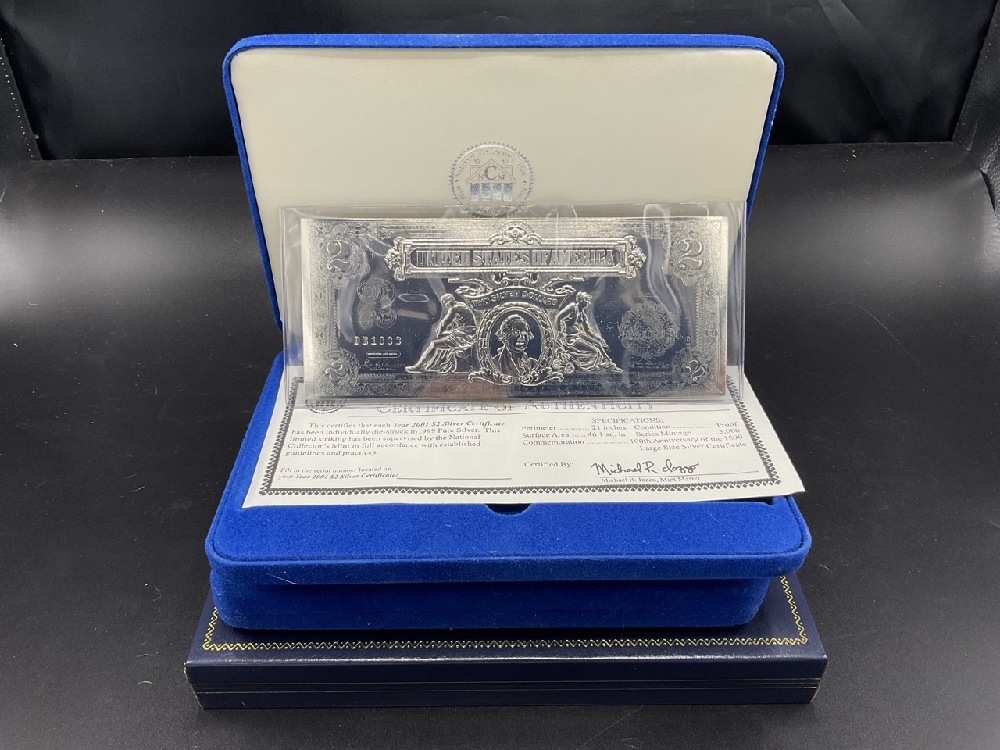 2- National Collectors Mint 2001 $2 .999 Silver 1- National Historic Society $1