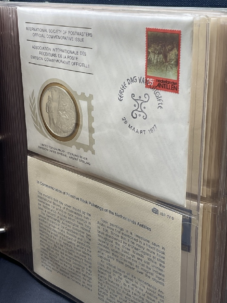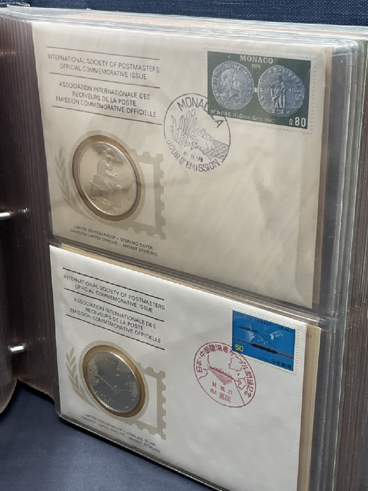 International Society Of Postmasters Official Commemorative Complete Set Silver Medals And Stamps.