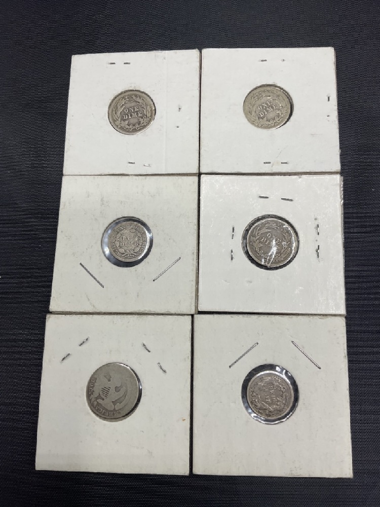 1835 Capped Bust Dime 1854,1870 Seated Liberty Half Dimes 1898, 1911-D, 1916 Barber Dimes