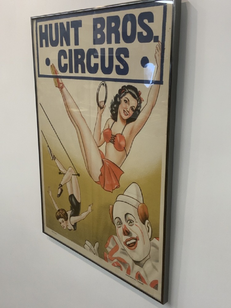 Vintage Hunt Bros. Circus Company poster framed.