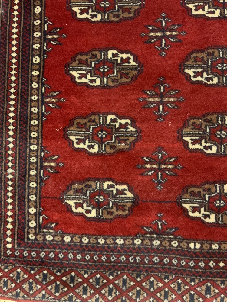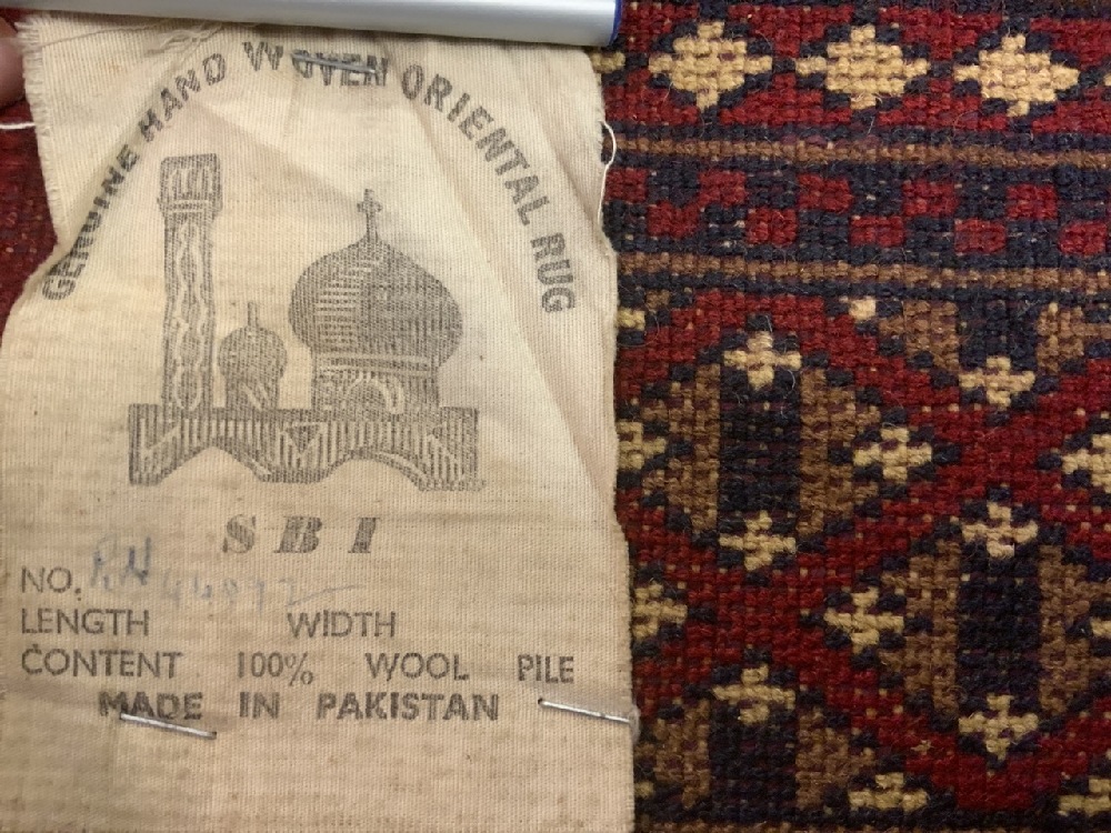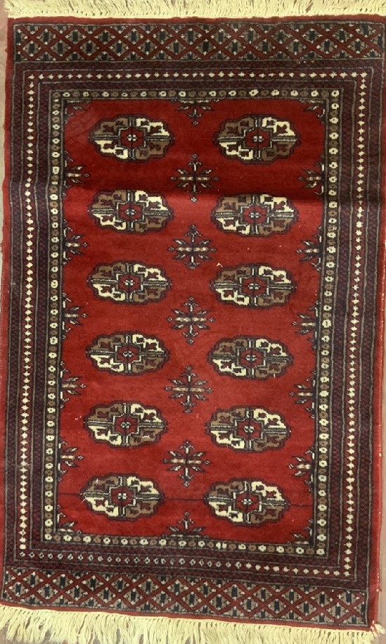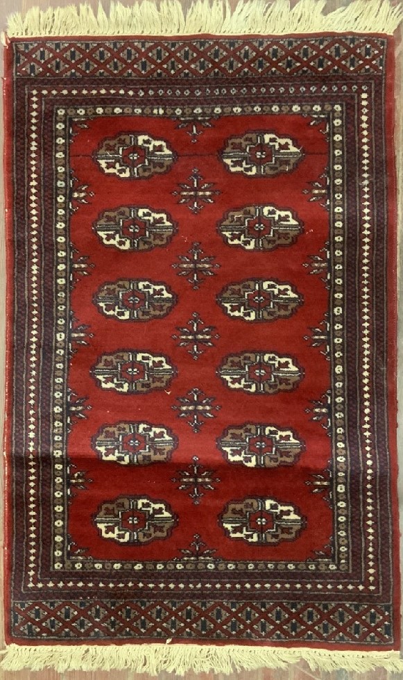 Vintage Pakistand Red Wool Rug. Hand woven.