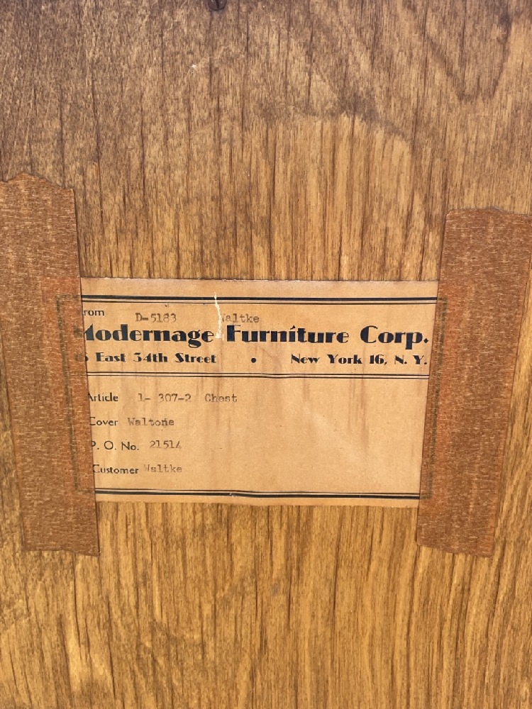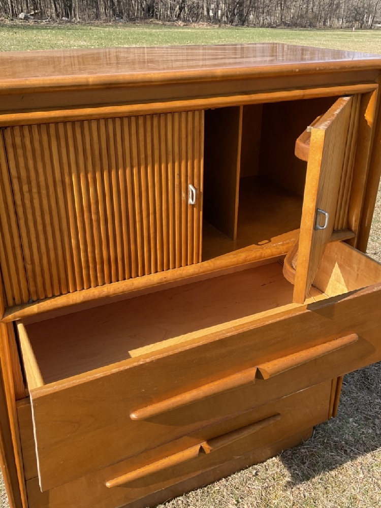 Two door top cabinet with side storage and three full size drawers beneath. Purchased from Modernage c.1950's .