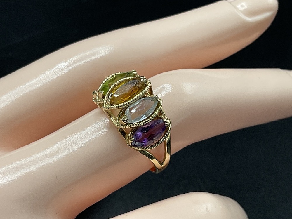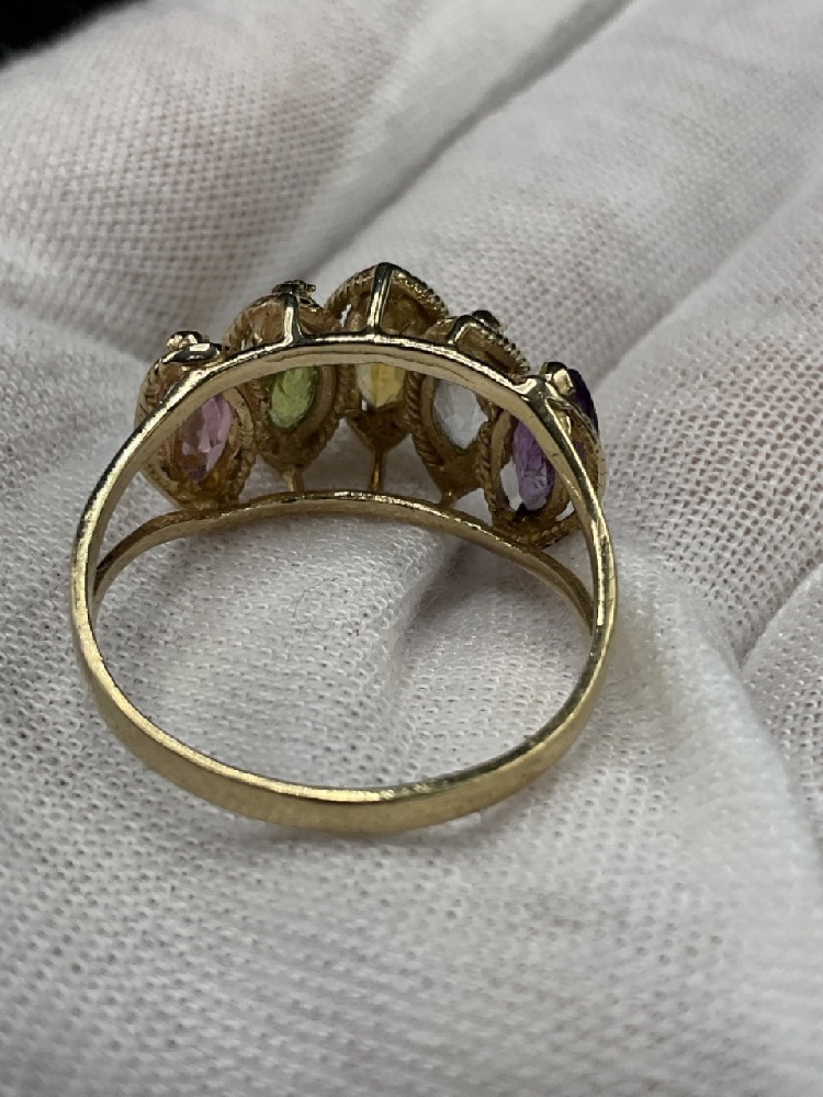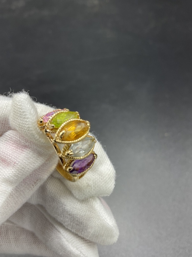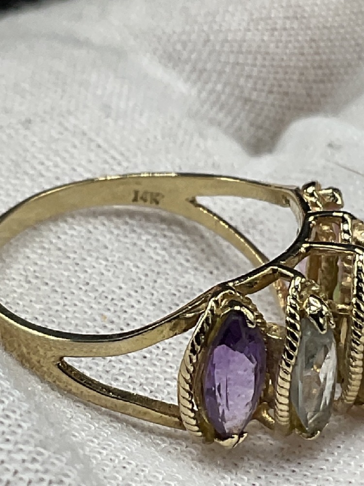 14K yellow gold multi colored gemstone ring.