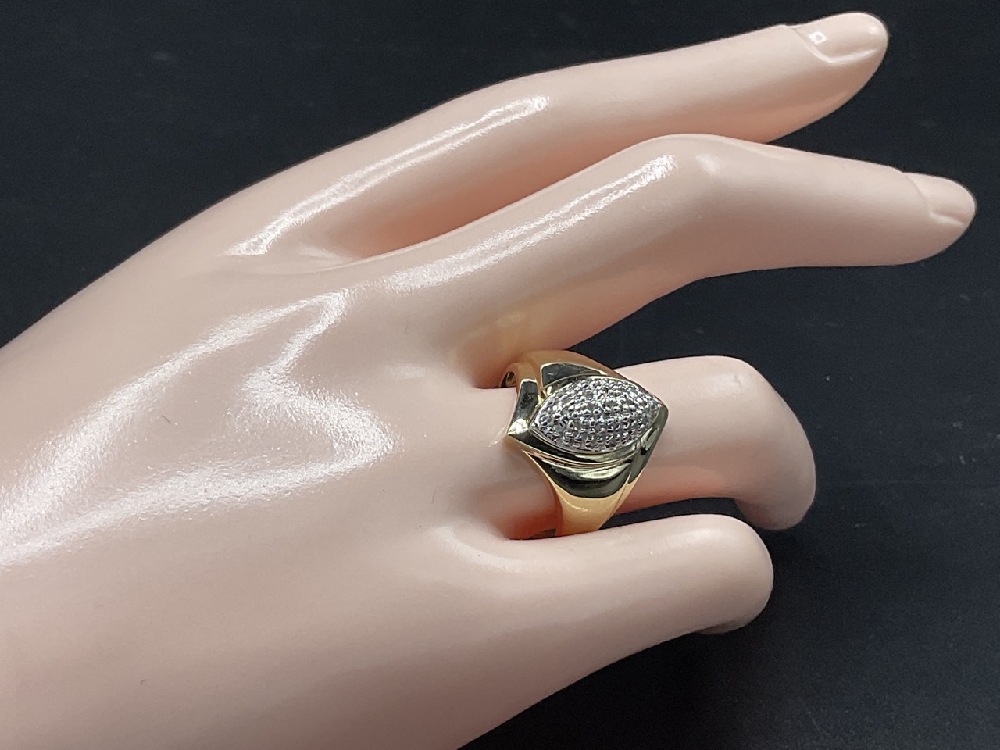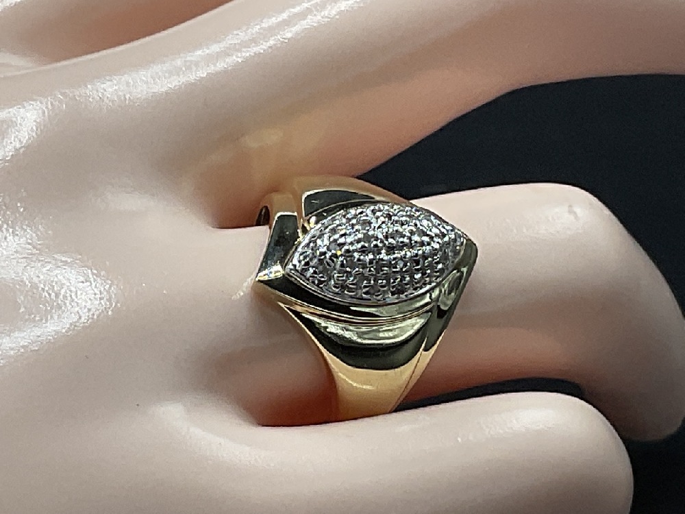 14K Marquis Shaped Gold Diamond Cluster Ring.