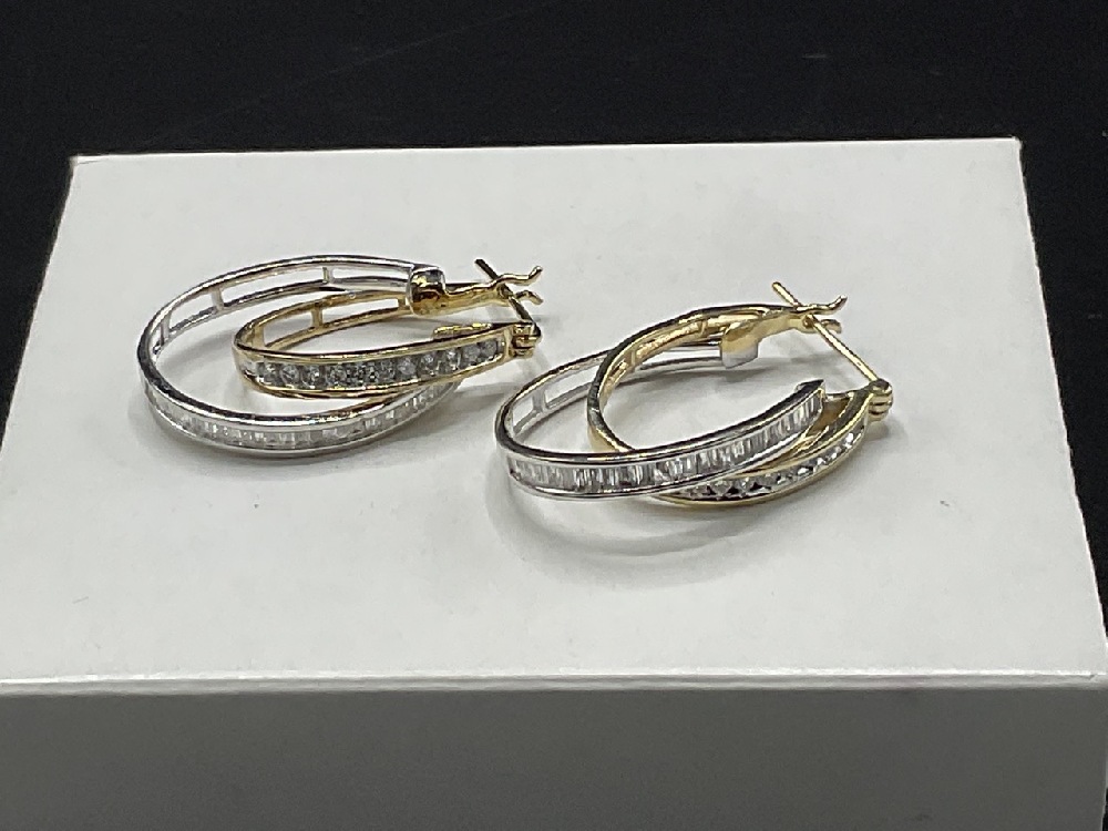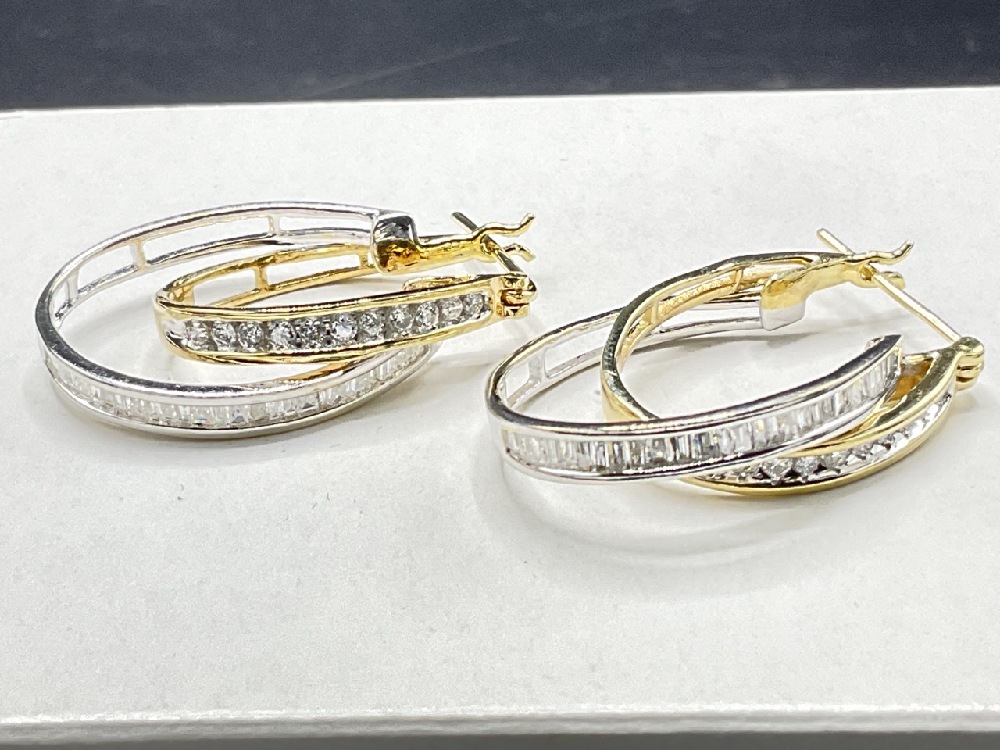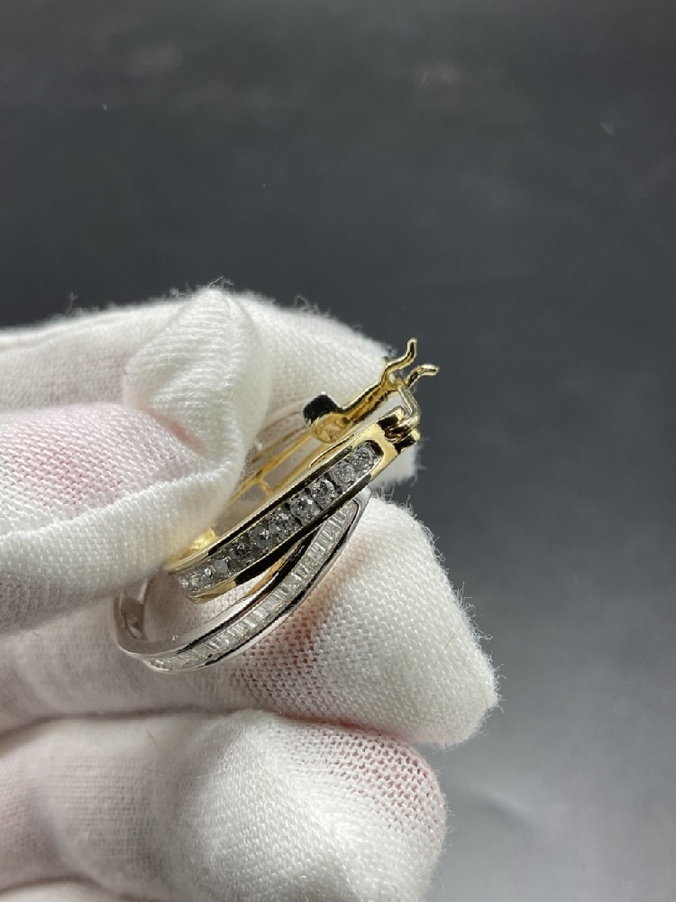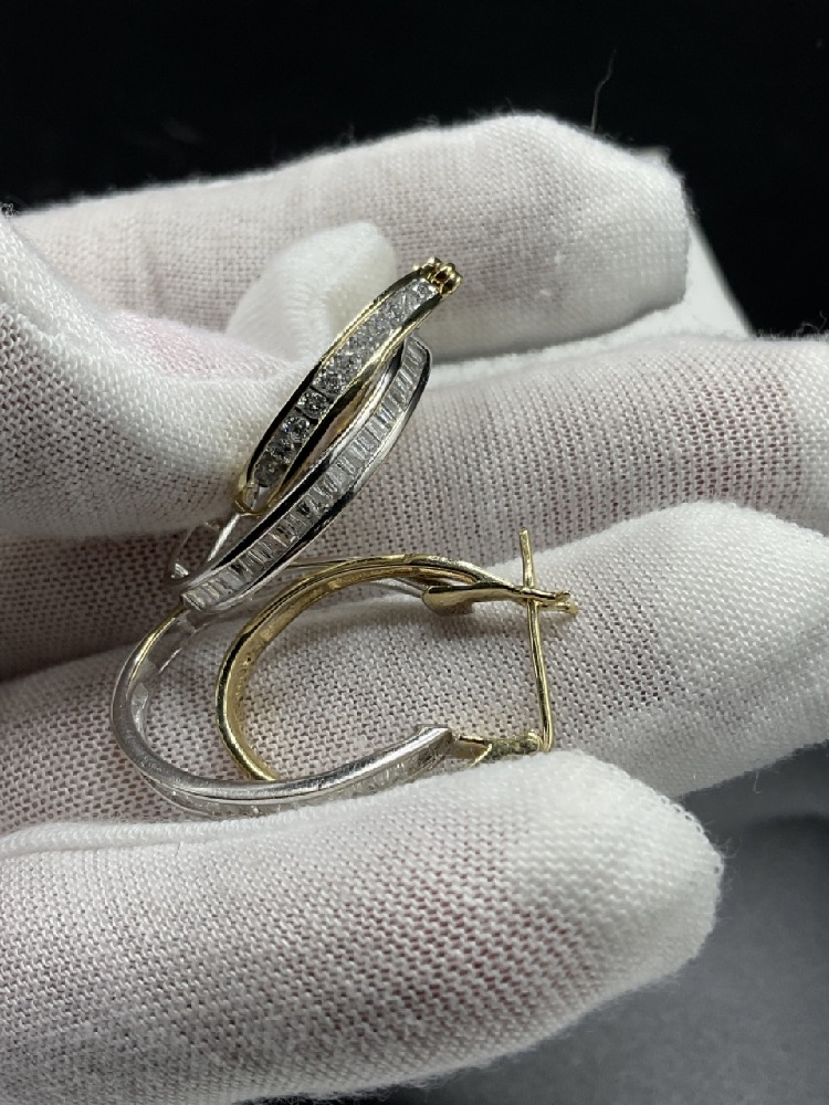 14k Gold Double Hoop Diamond Earrings.