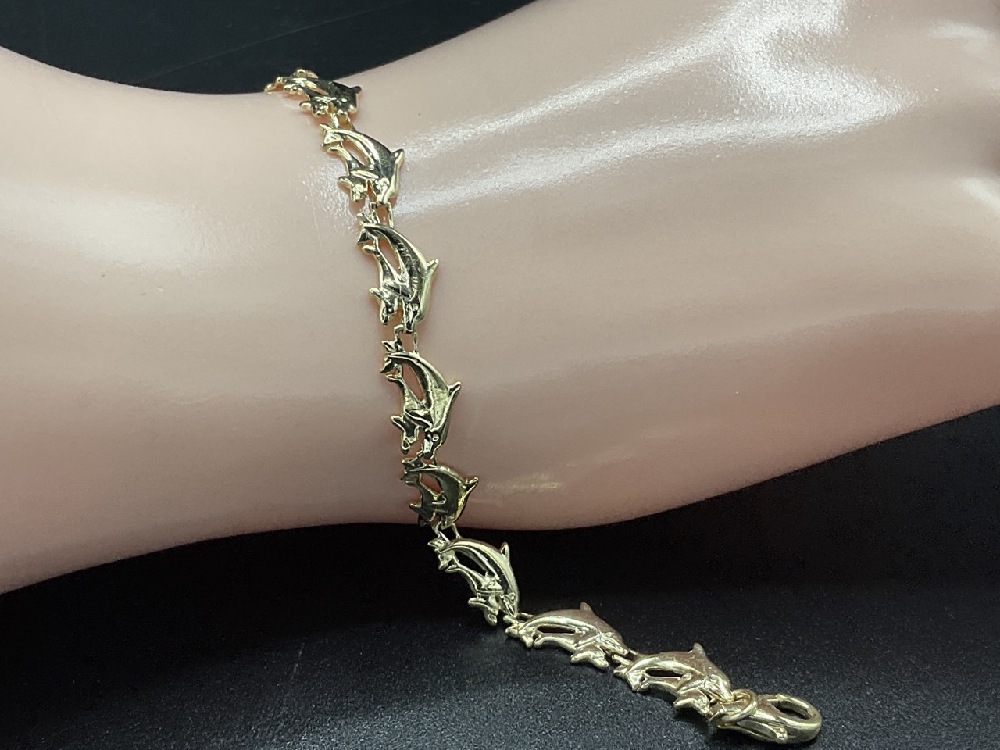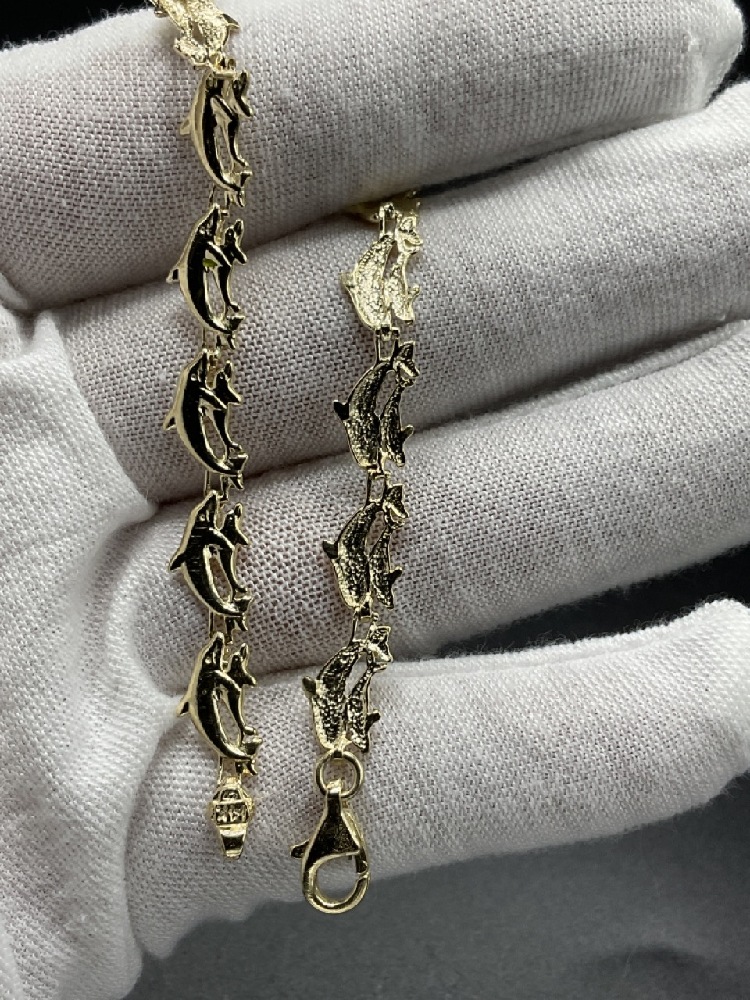 14K Yellow gold dolphin bradcelet.