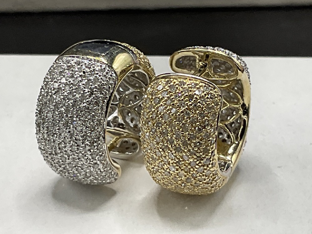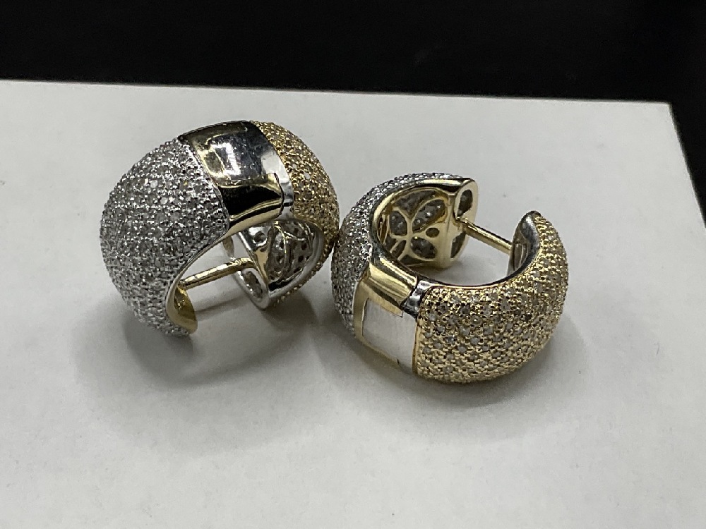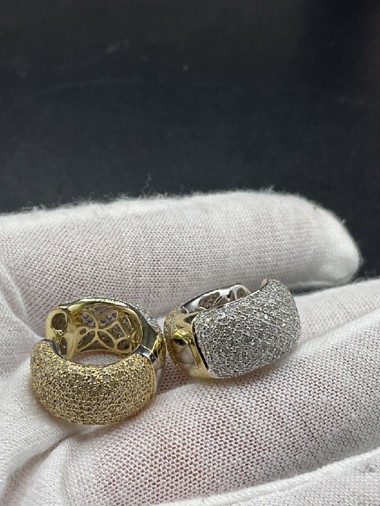 A Pair 14K Gold Two Tone Diamond Huggie Earrings.