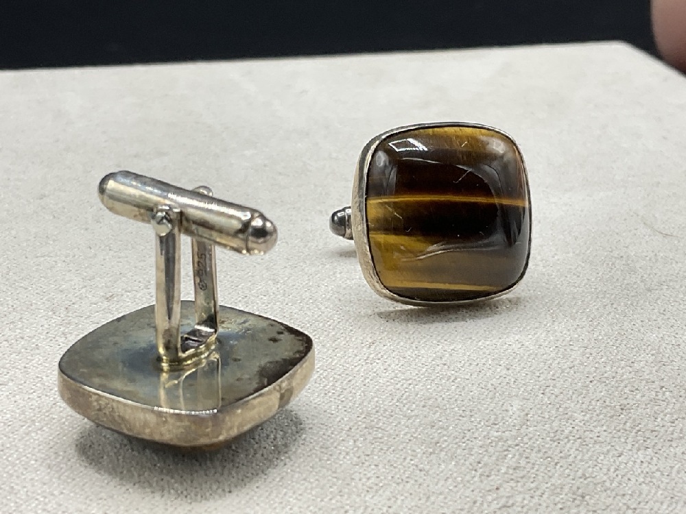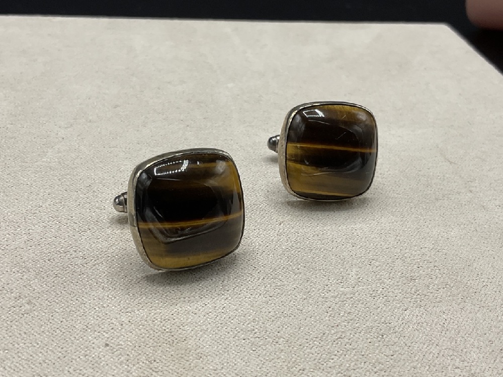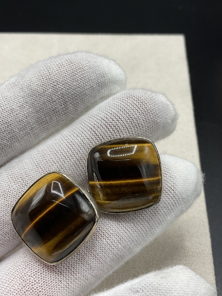 A Pair, Fine Sterling Silver Cats Eye Cufflinks.