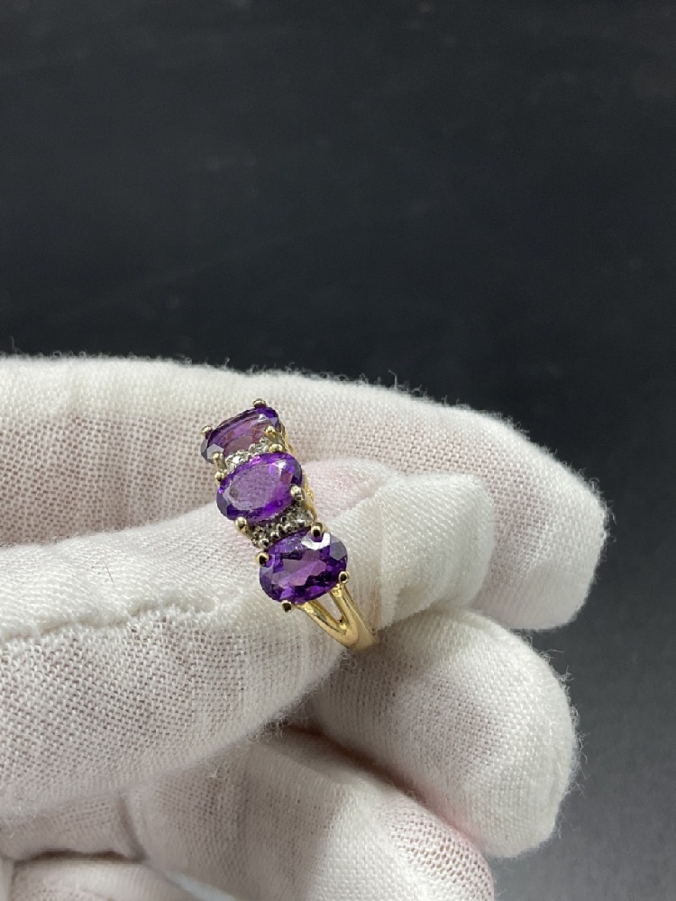 14k y.g. Amethyst and Diamond Ring.