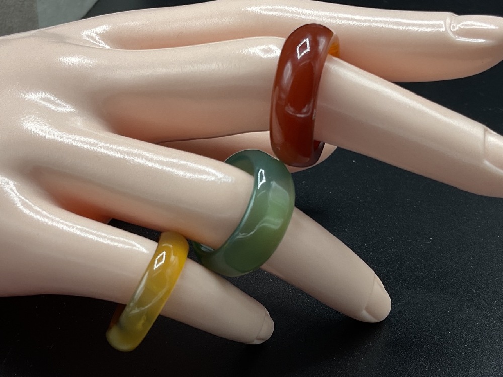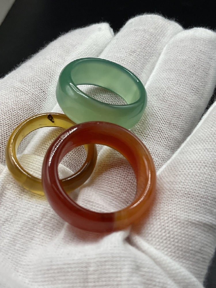 Three (3) Jade jewelry rings. Sizes 6-9.