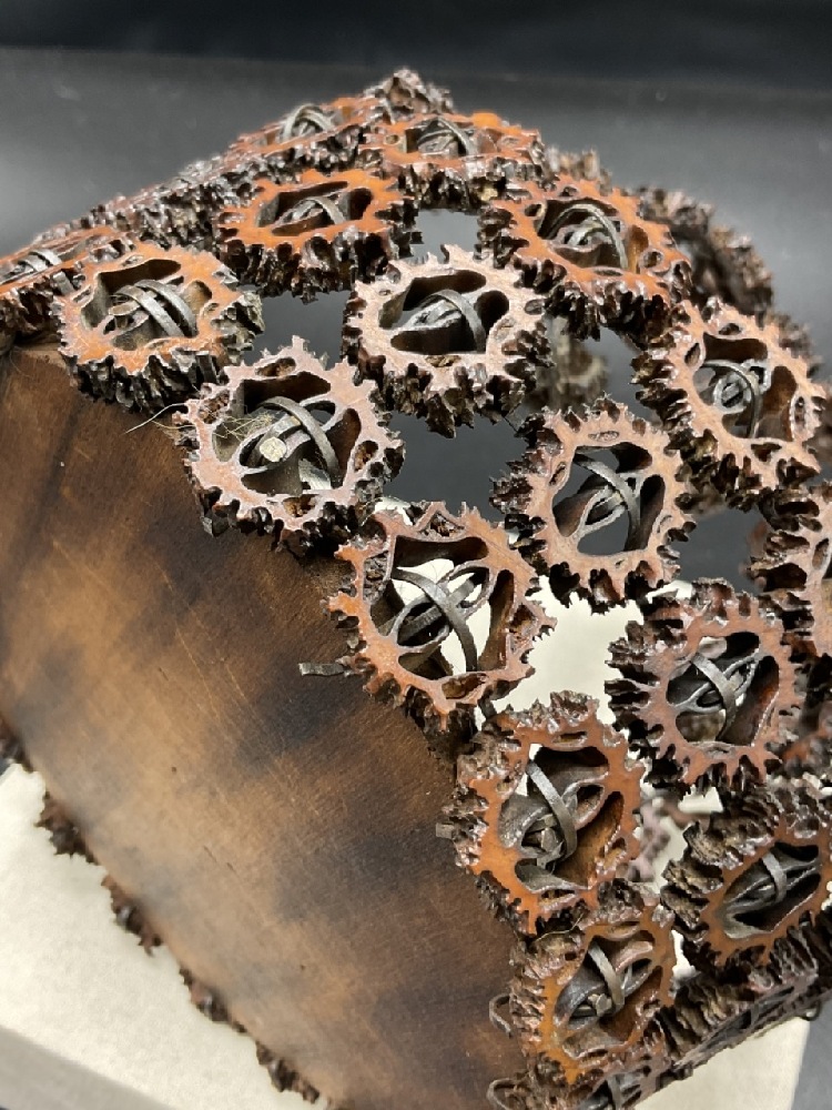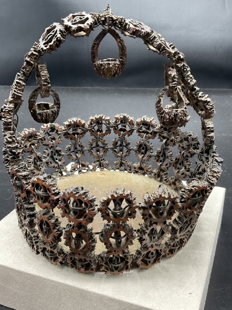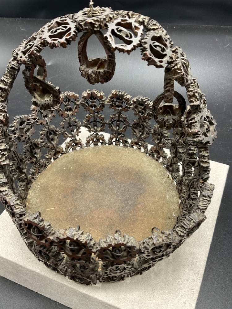 Carved walnut folk art basket.