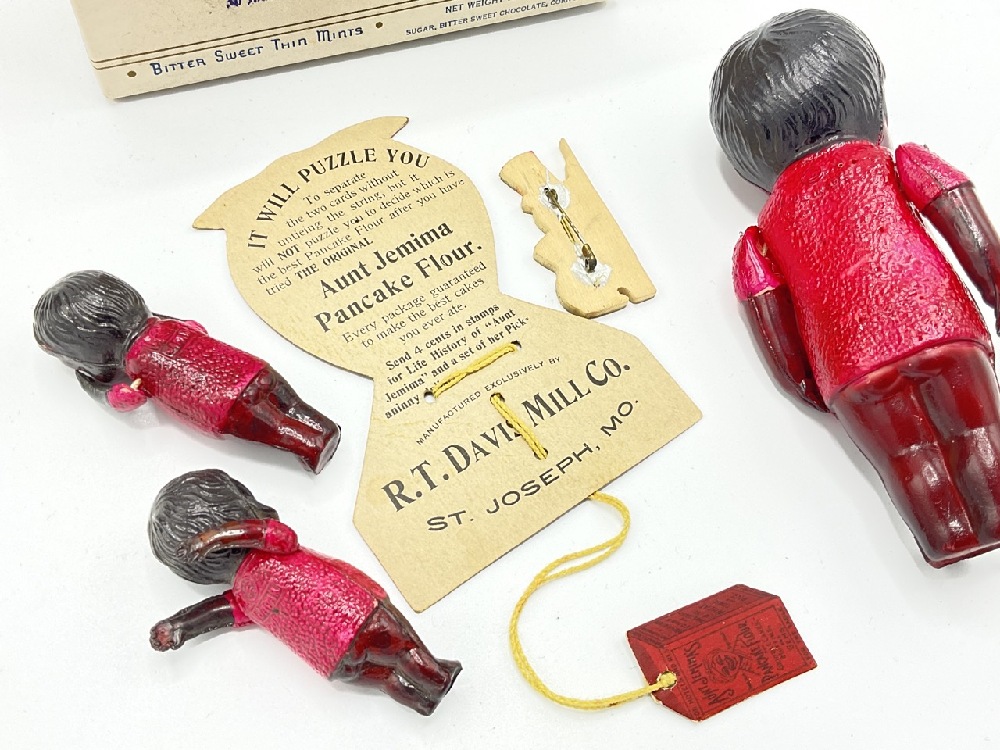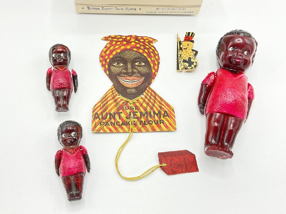 Vintage Aunt Jemima Giveaway Celluloid Dolls, Advertising, Mr. Peanut World's Fair Pin and Kingston, NY Mint Box.
