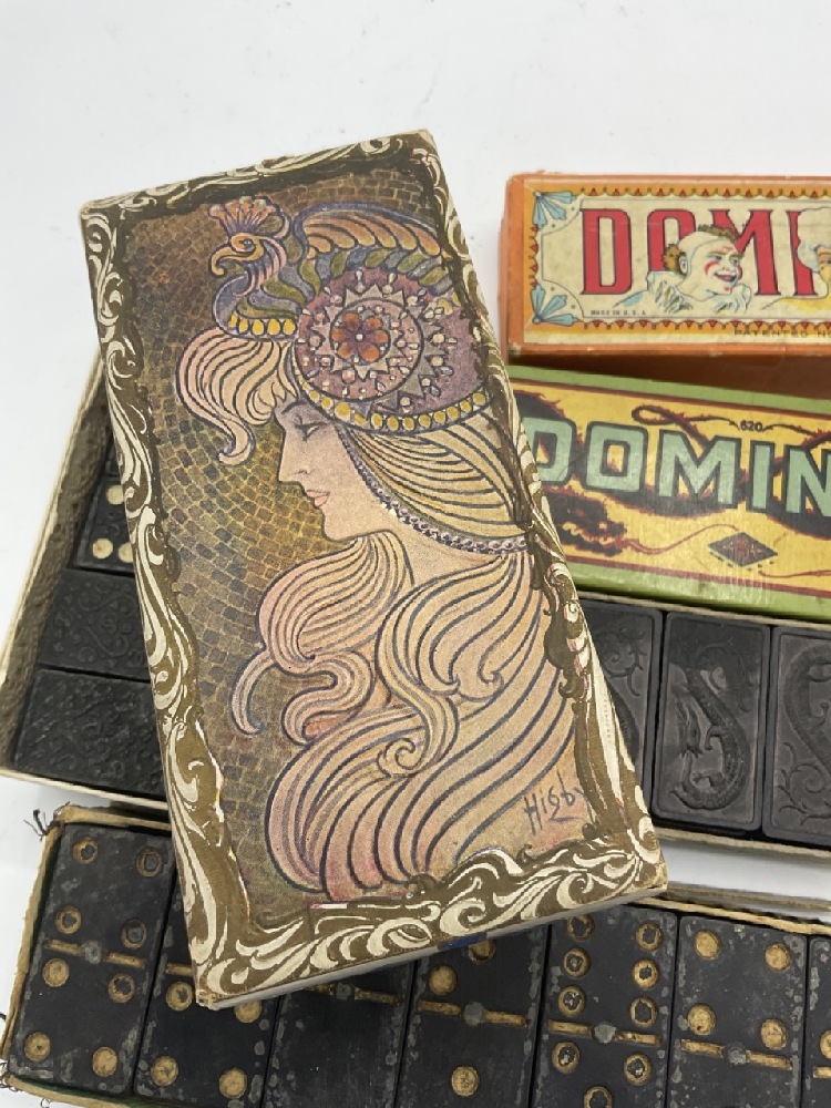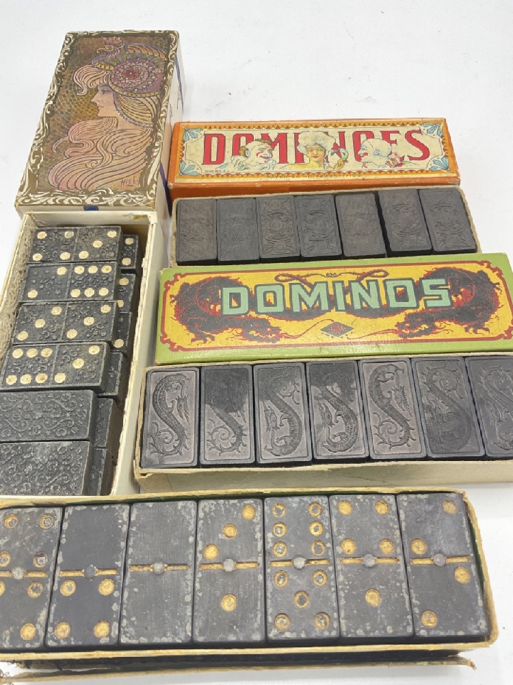 Four Sets of Vintage Ebonized Wood Dominoes.