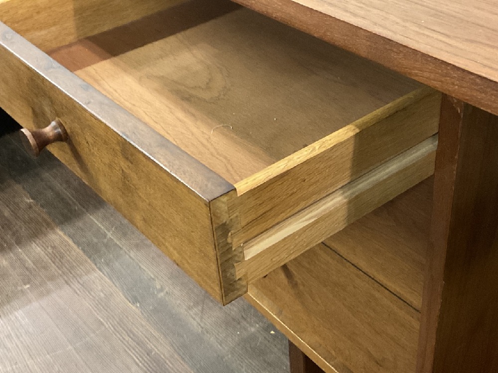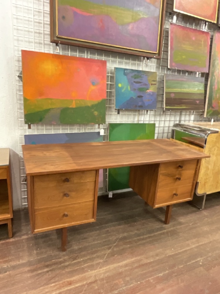 Danish Modern Teakwood desk. Left side has two drawers and right side three drawers. Symetrical look however left side bottom if a file drawer.