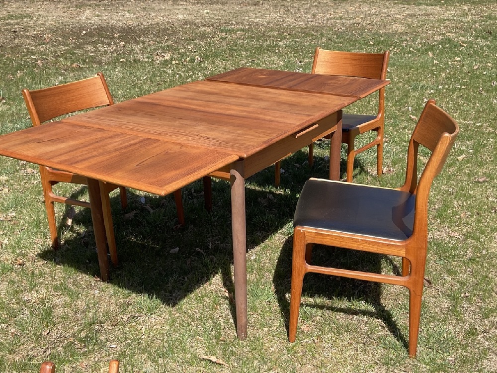 Danish modern teakwood square table with four (4) chairs. Funder Schmidt and Madsen Odense (Denmark)
