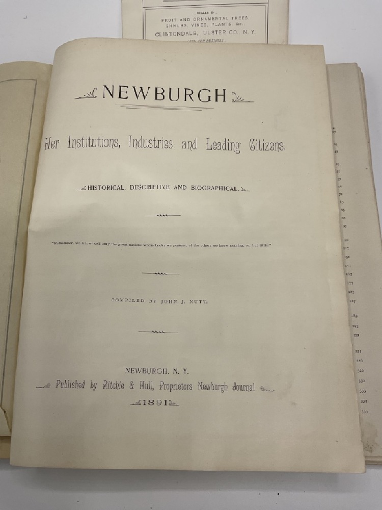 Newburgh, Her Institutions, Industries and Leading Citizens 1891. Compiled by John J. Nutt. Map included.