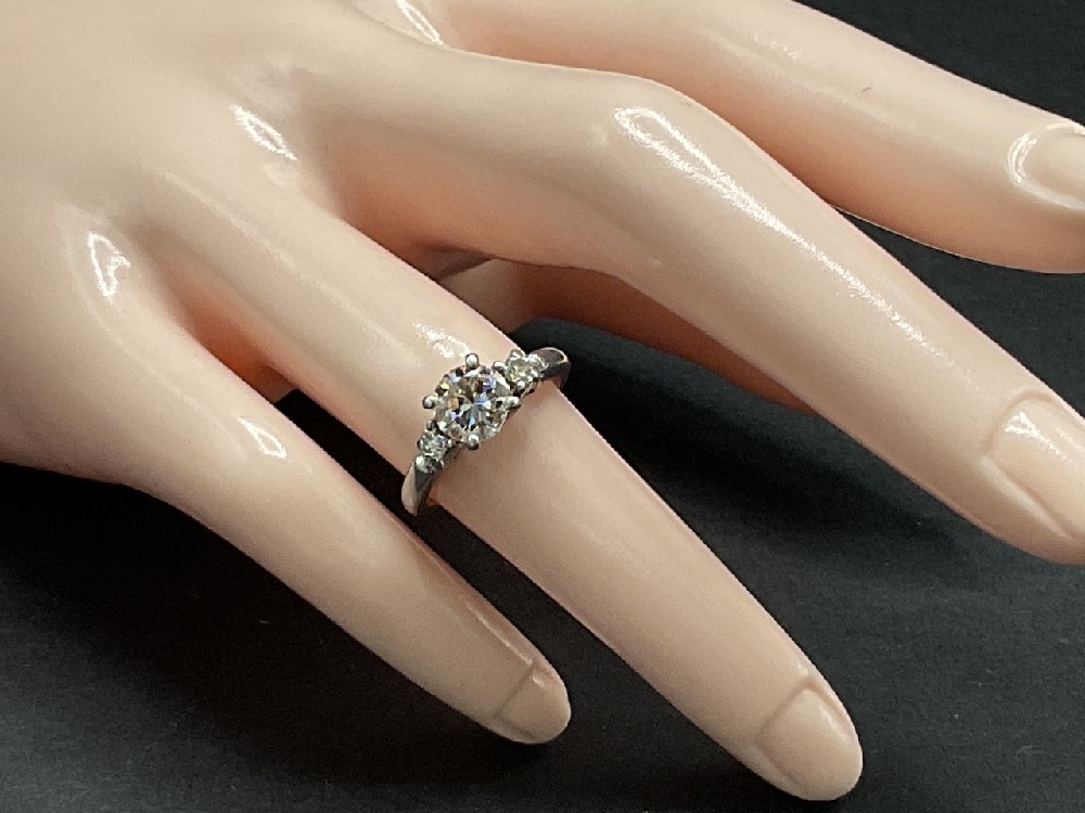Platinum diamond engagement ring with a round center stone. Round Center Diamond: 1.00ct Color G Clarity VS1