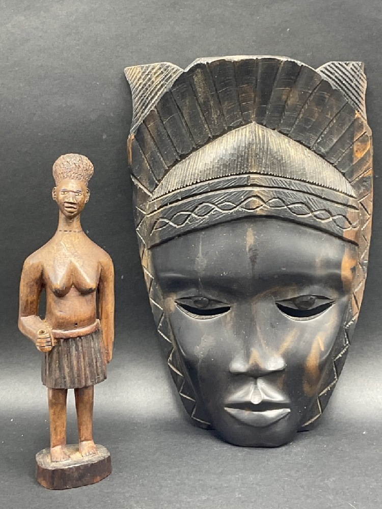 Dimensions: 12" X 7 1/4" (mask), 7" X 3" and 9 1/2" h (figure)