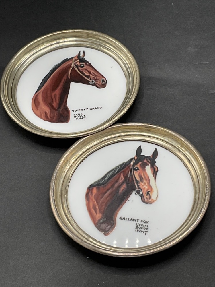 Lenox horse dishes with sterling frames. Signed by Lynn Bogue Huntl
