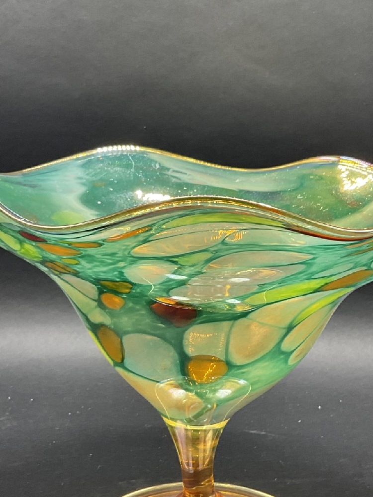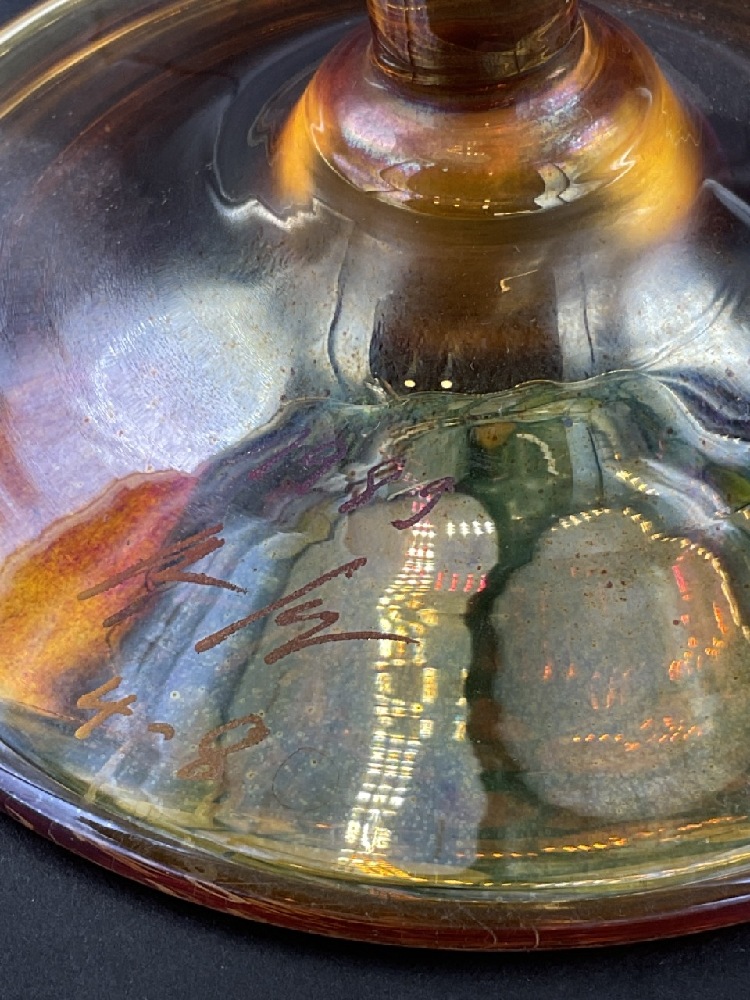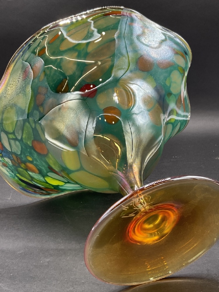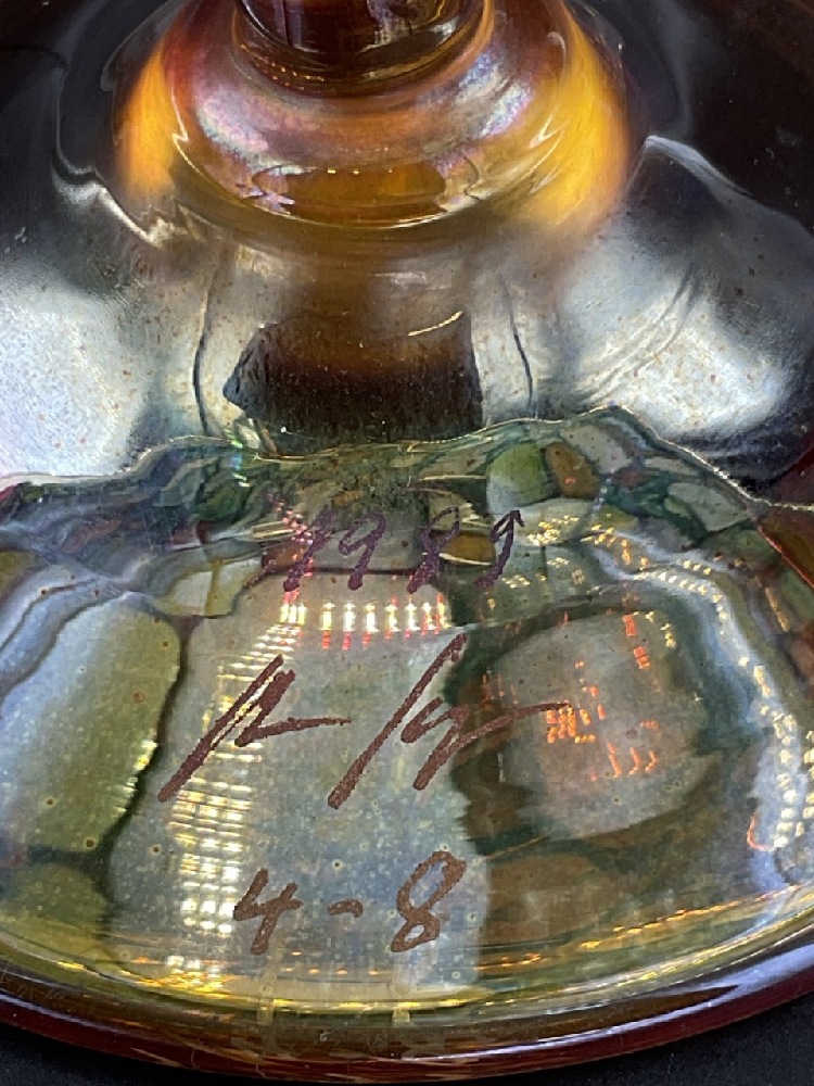 1980's Illegibly signed studio art glass vase. Floriform.