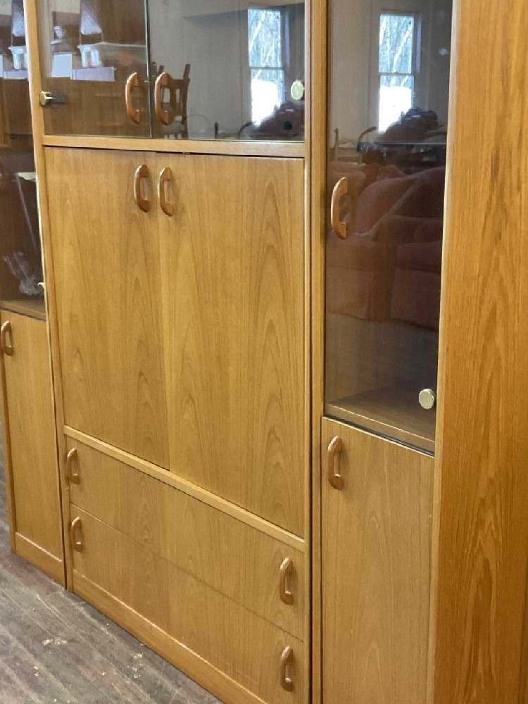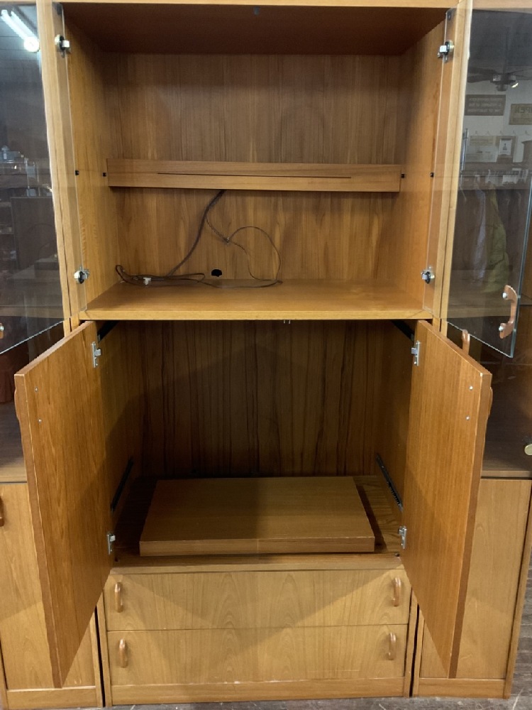 Danish modern teakwood entertainment/electronics cabinet. Wall unit is Made in Denmark.