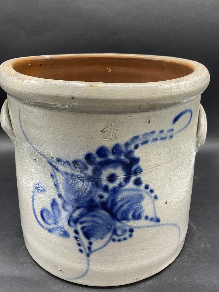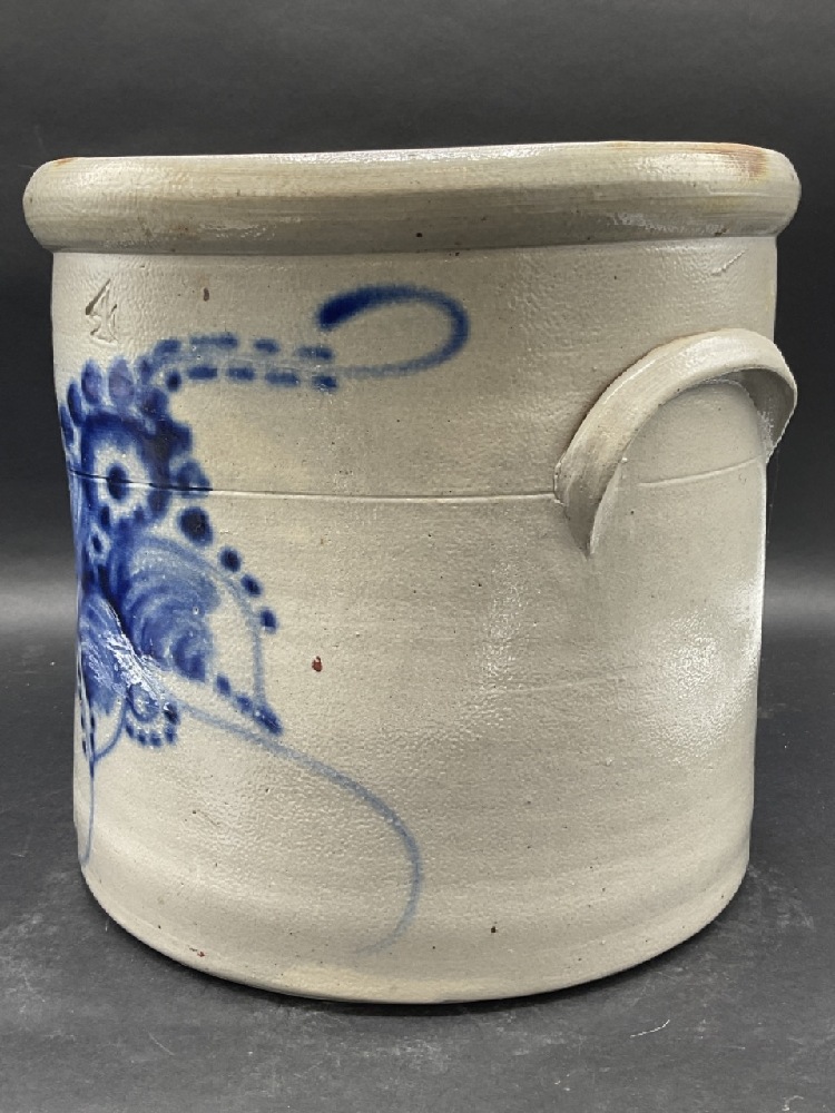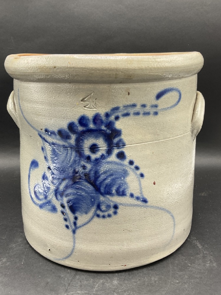 4 Gal Blue Decorated Crock.
