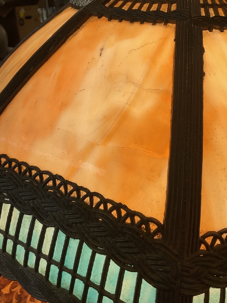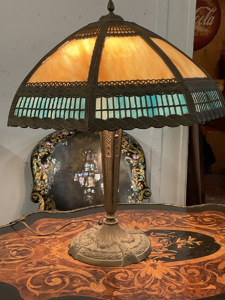 Slag glass table lamp.