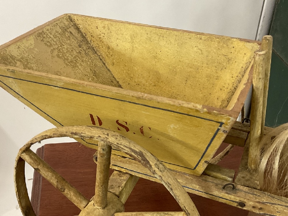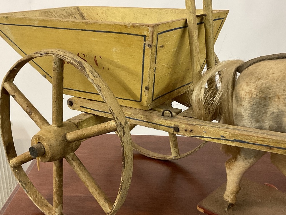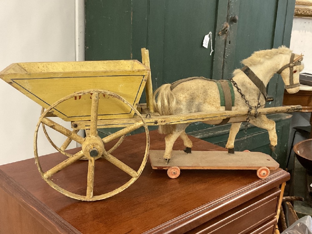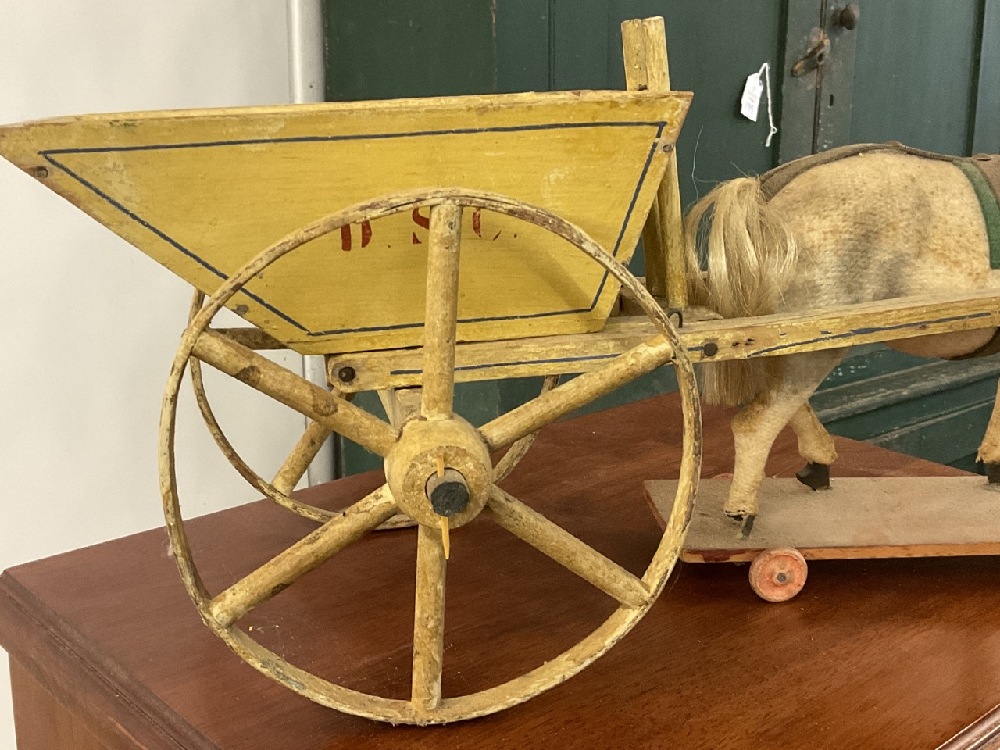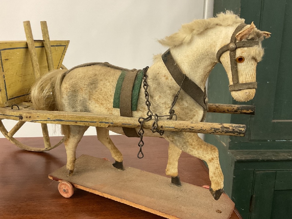 Horse pulling wagon cart pull toy.