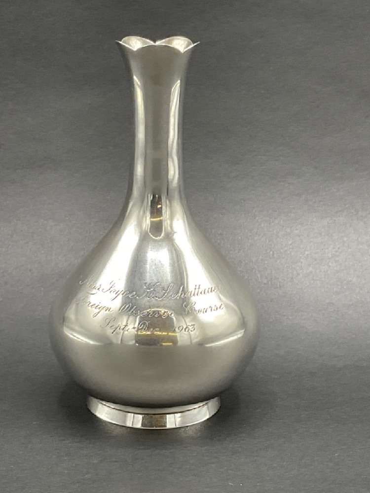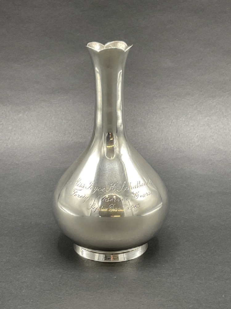 Tiffany and Company sterling silver vase. Inscribed.