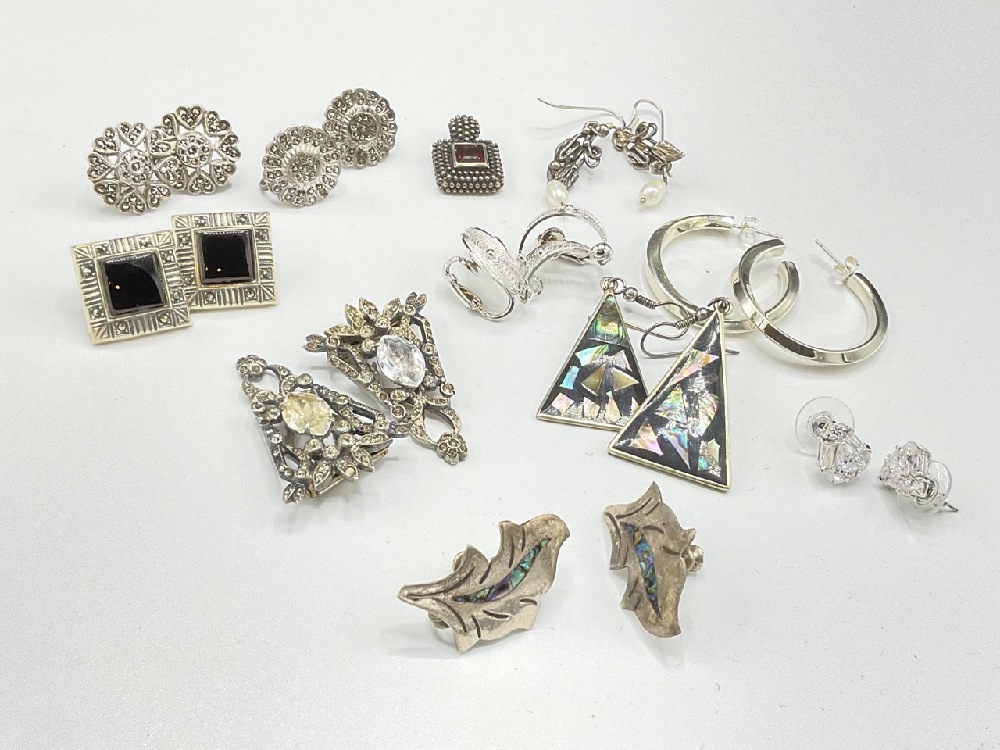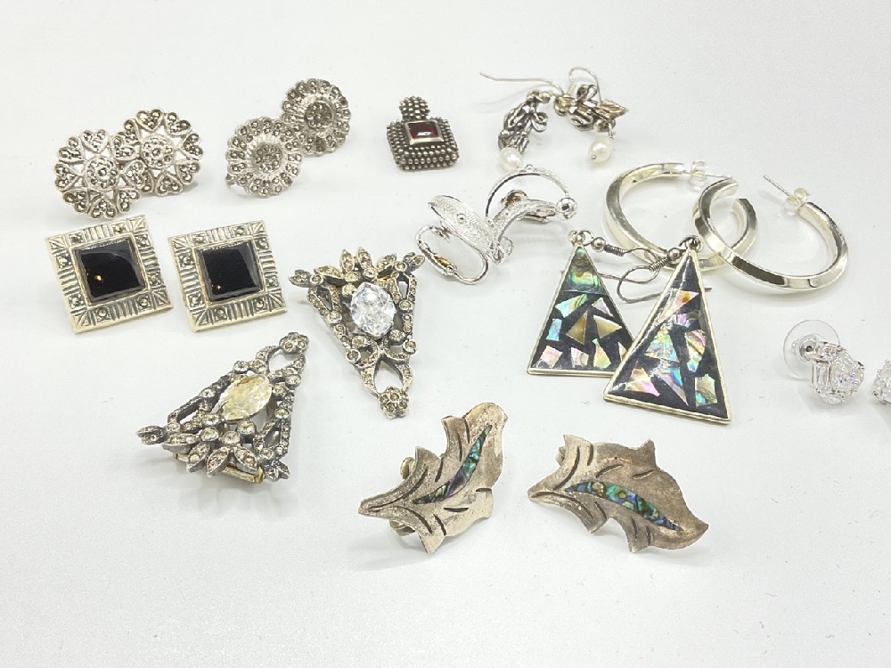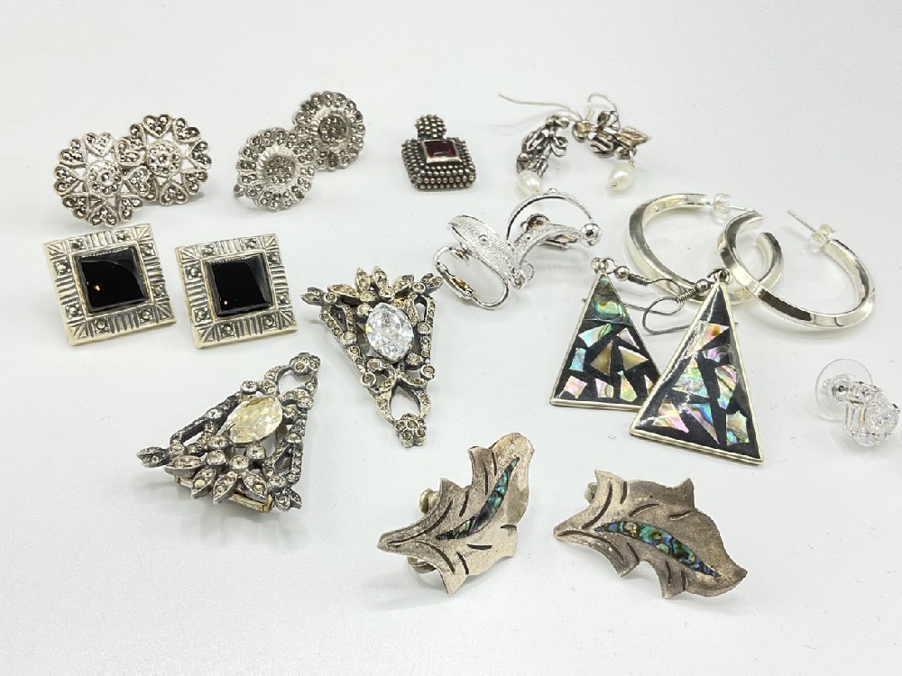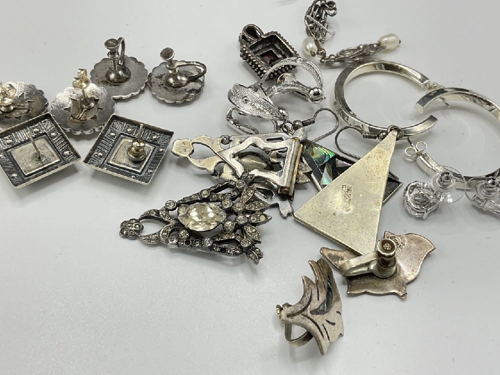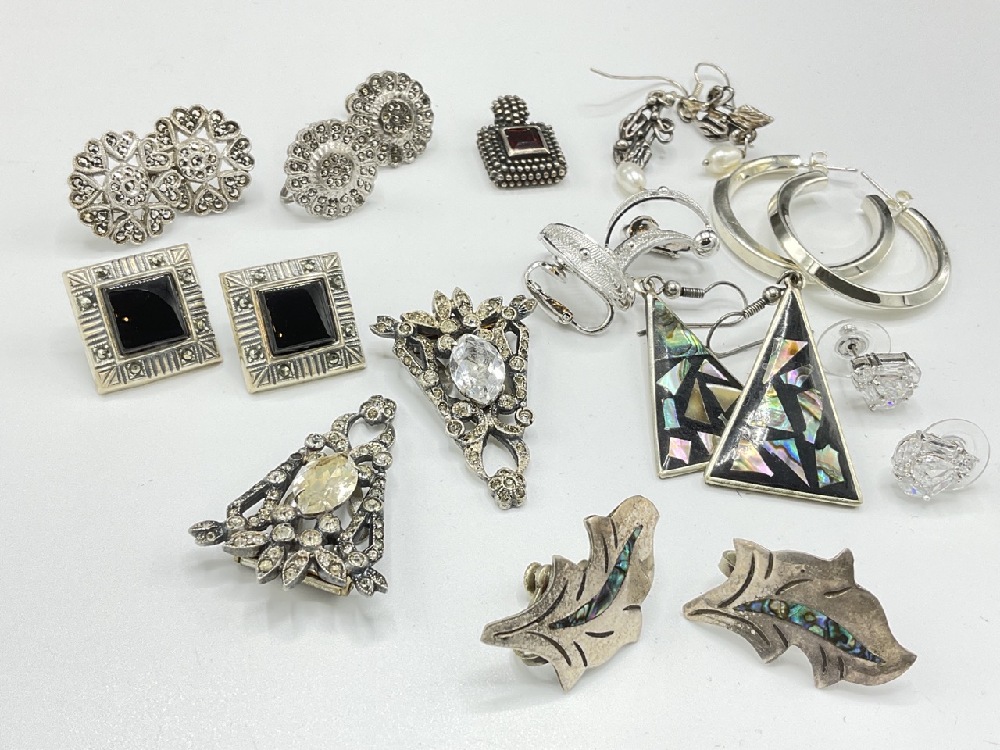 Assorted Sterling Silver Earrings and Pendant. One pair is Alpaca silver.
