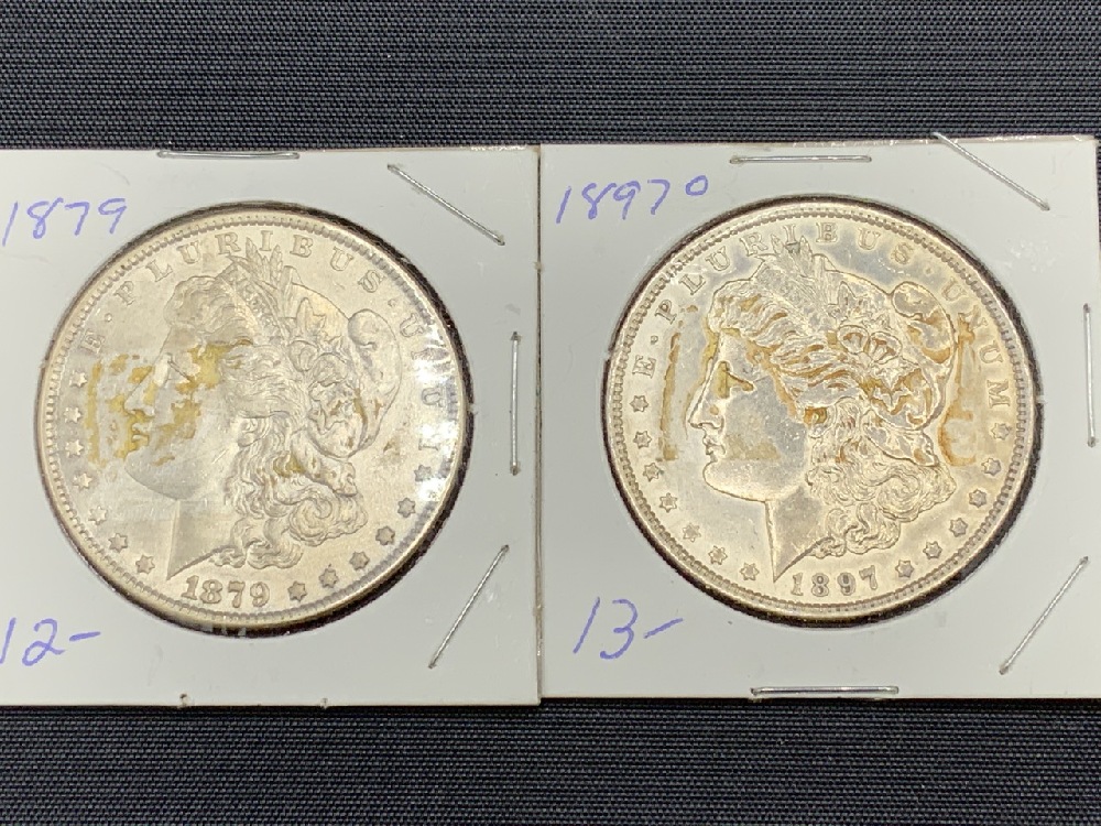 1879-P 1897-O Morgan Silver Dollars.