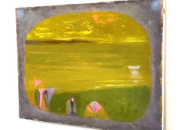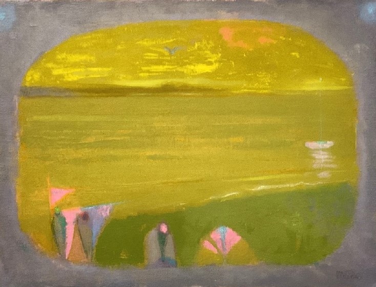 Titled: Two figures by shore