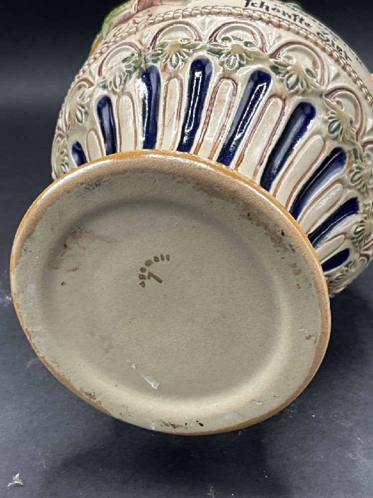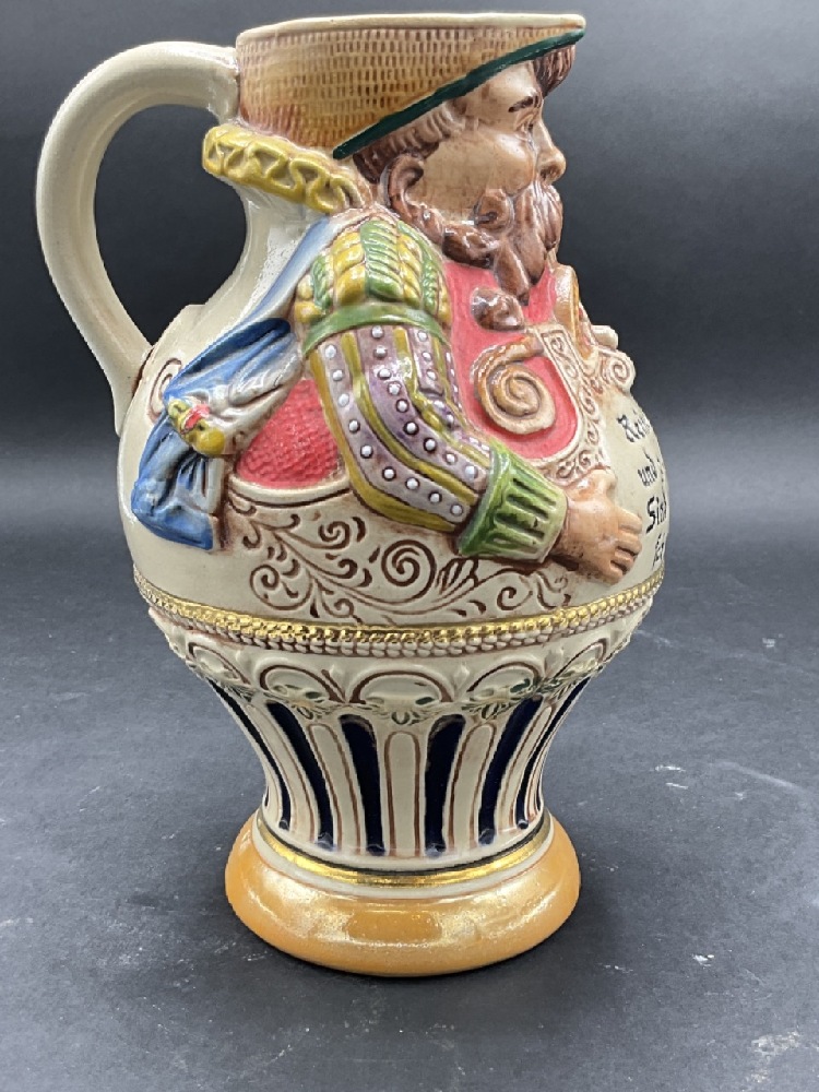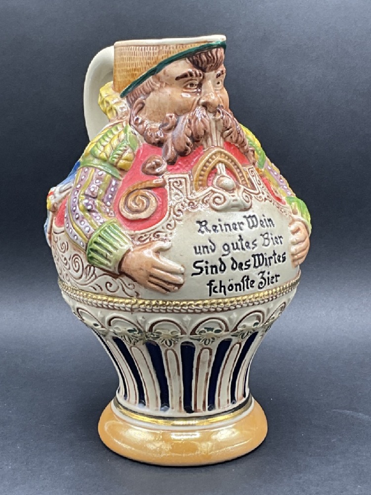 German Gerz Stomeware Figural Beer Stein Pitcher.